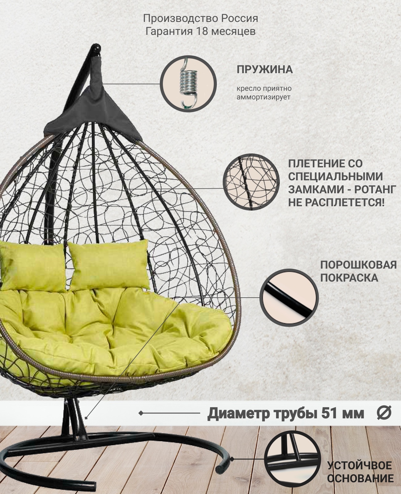 Подвесное кресло садовое 205х130х195 см, Laura Outdoor СЕЛЕНА палисандр (тент зеленый)