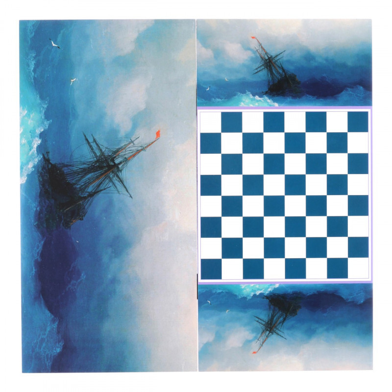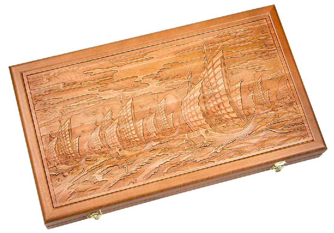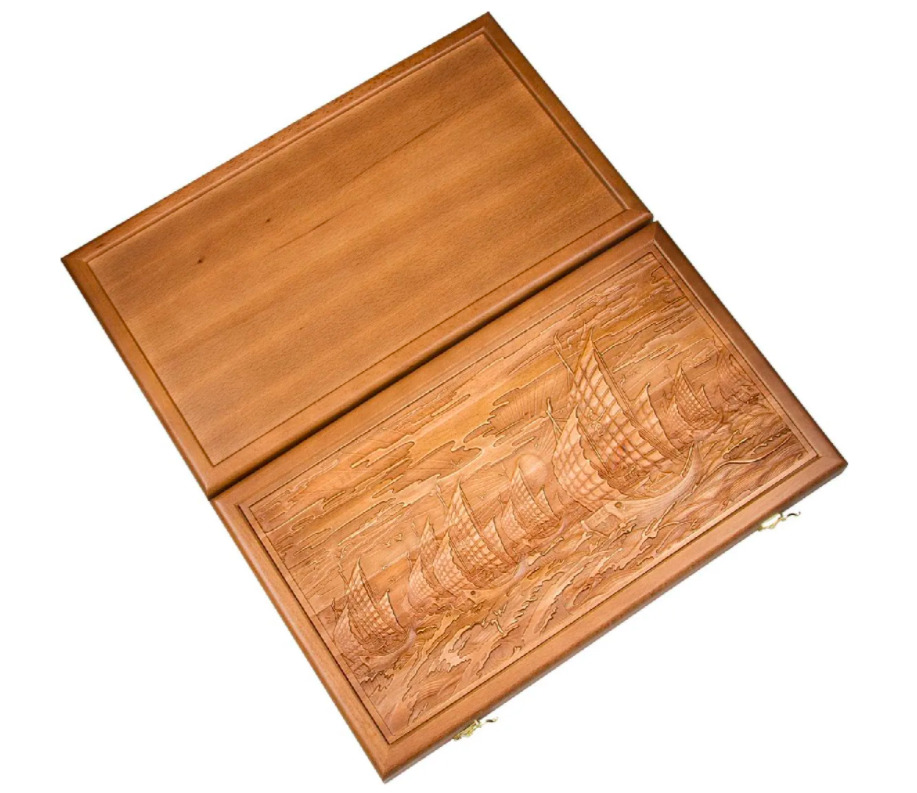 Нарды подарочные с объемной резьбой Парусники 50х50 см