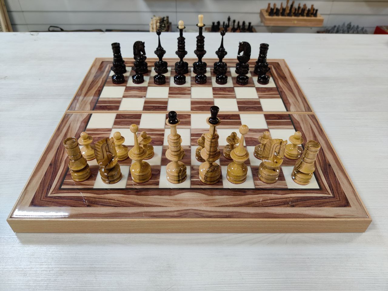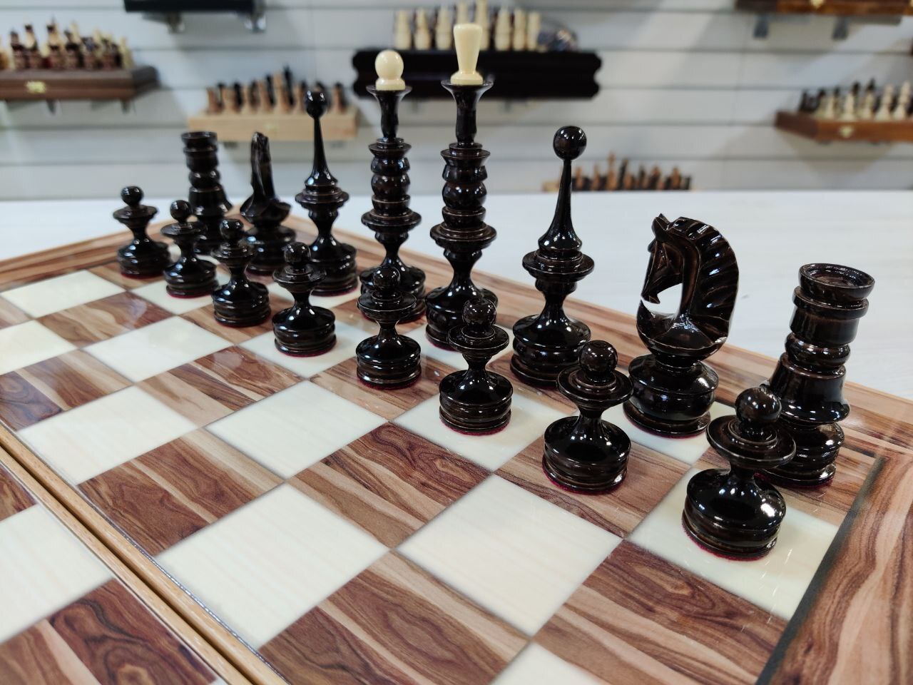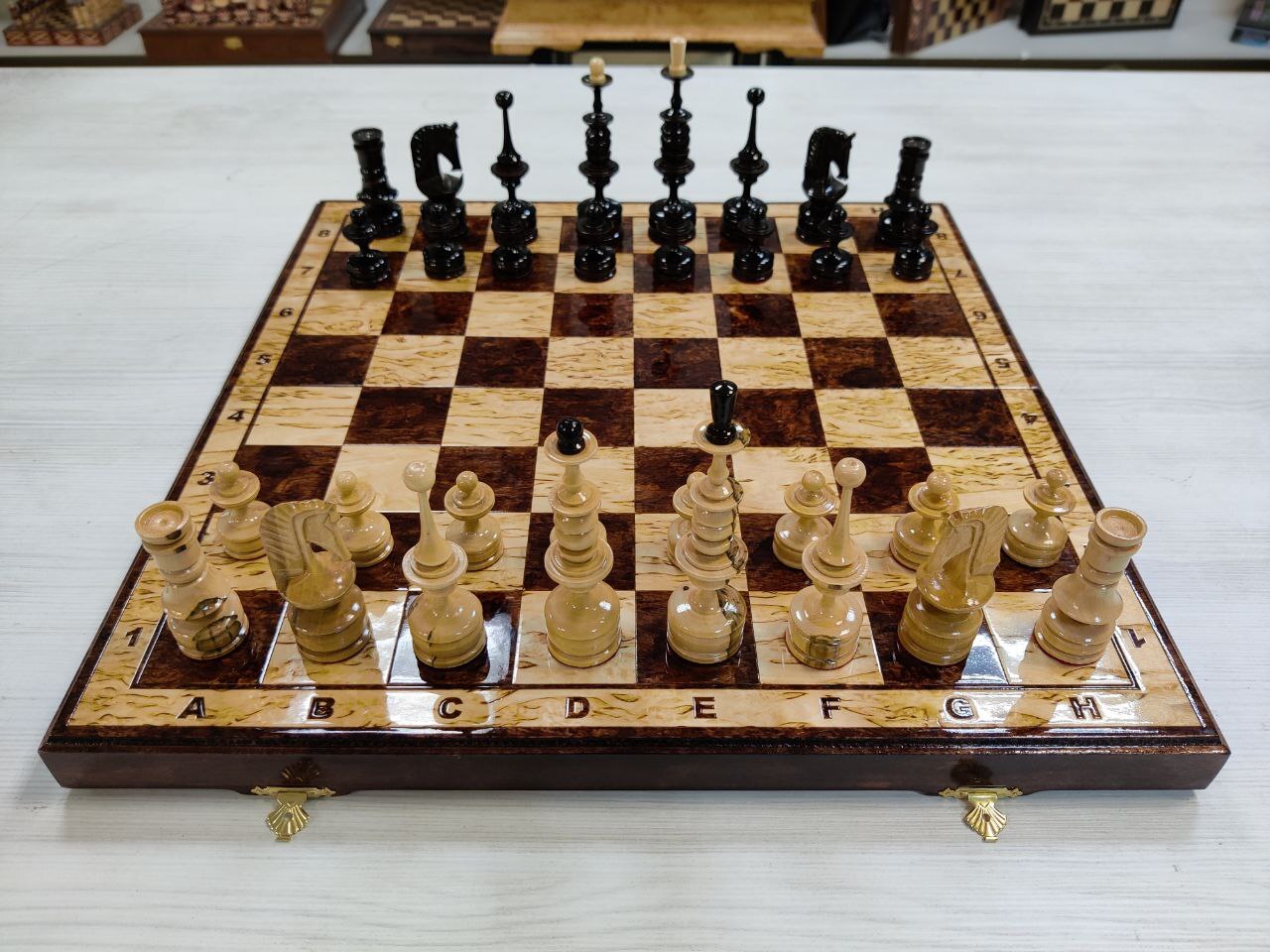 Шахматы нарды шашки Американский орех с фигурами из клена большие