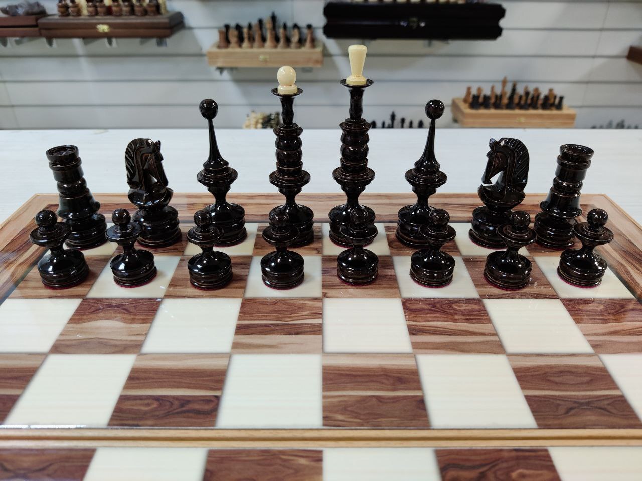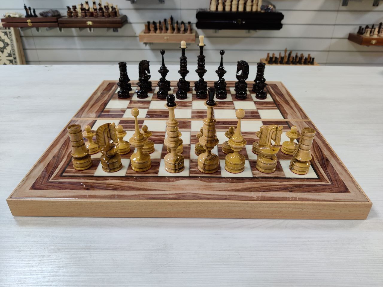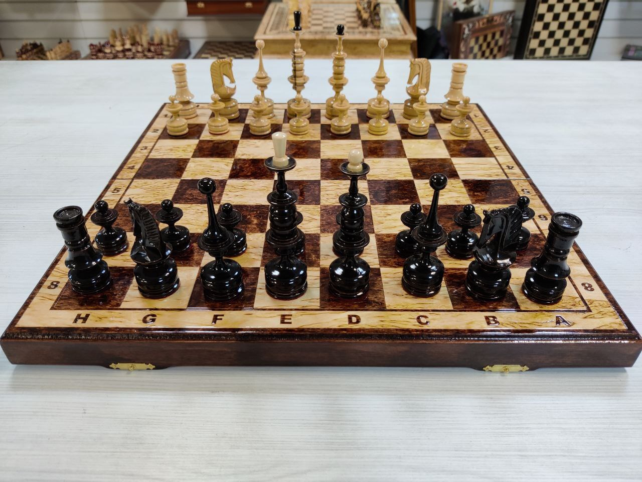 Шахматы нарды шашки Американский орех с фигурами из клена большие