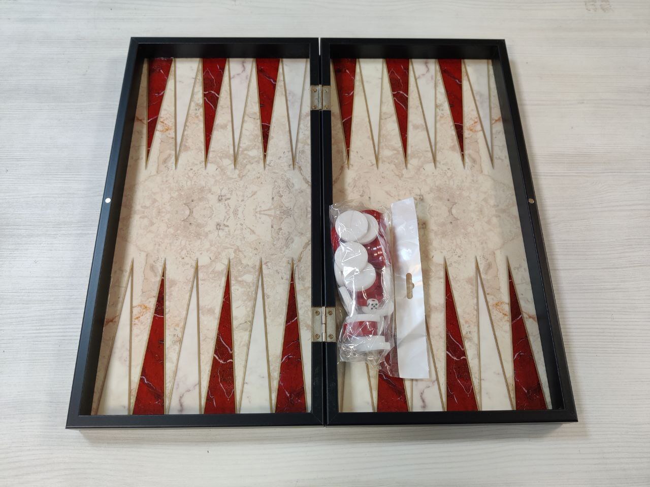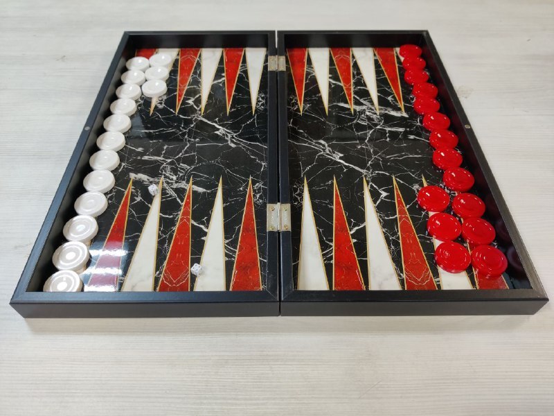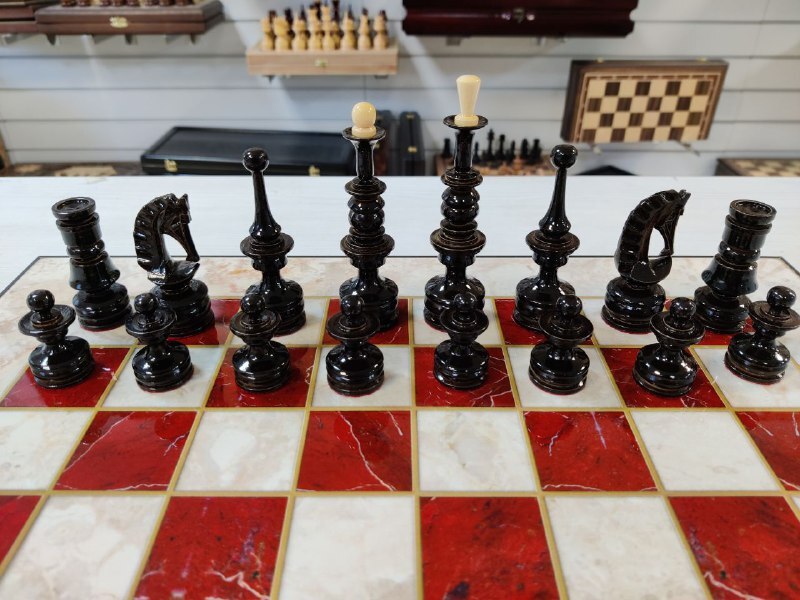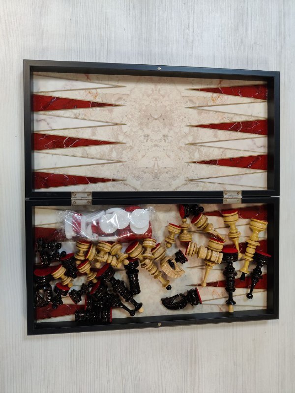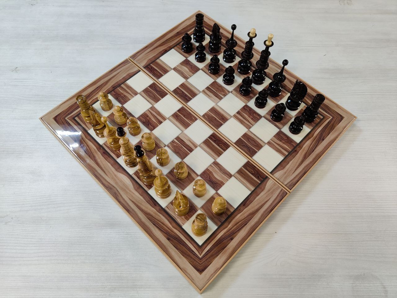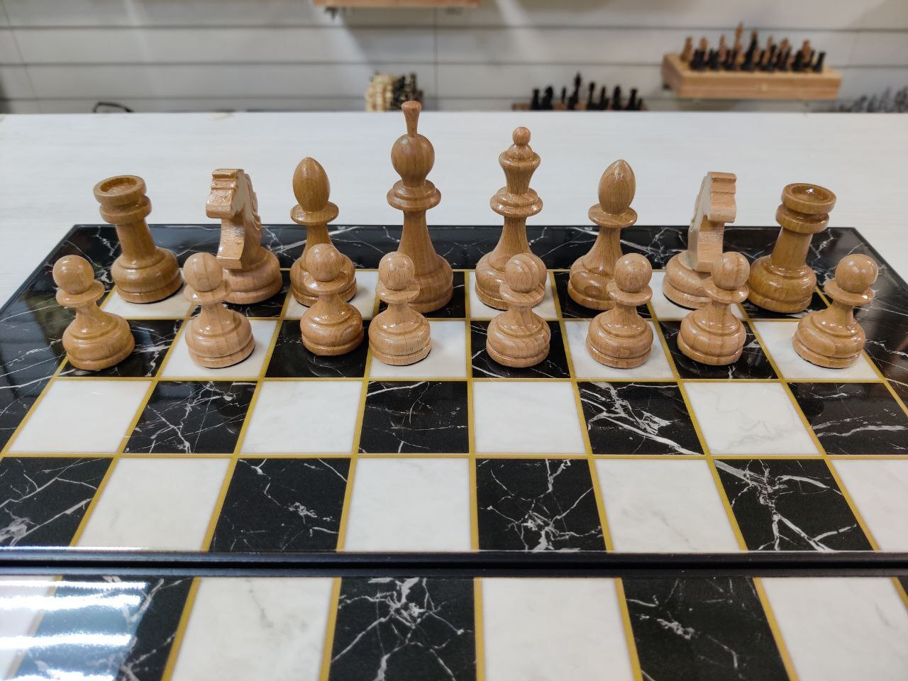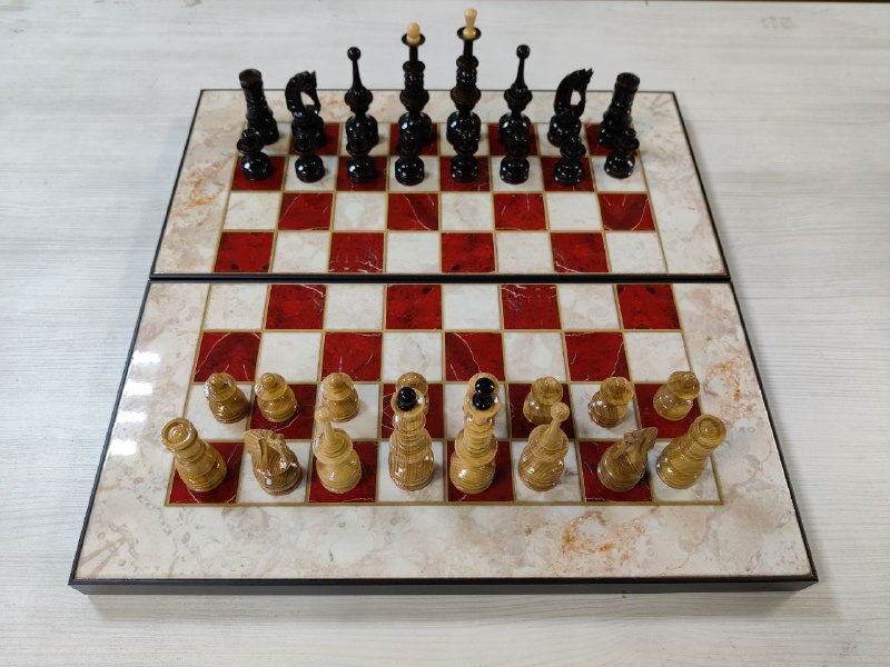Шахматы с нардами под Мрамор с фигурами из бука