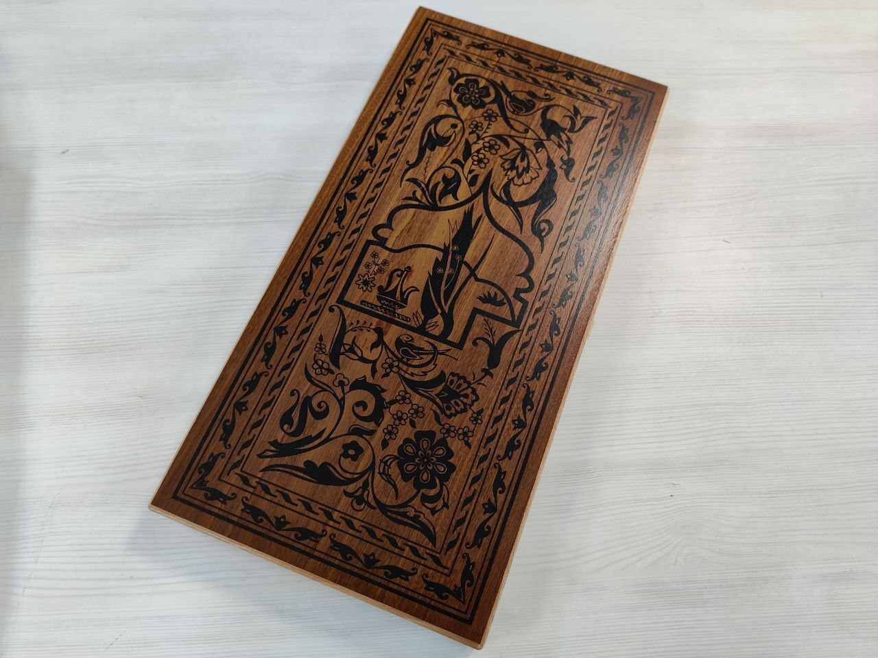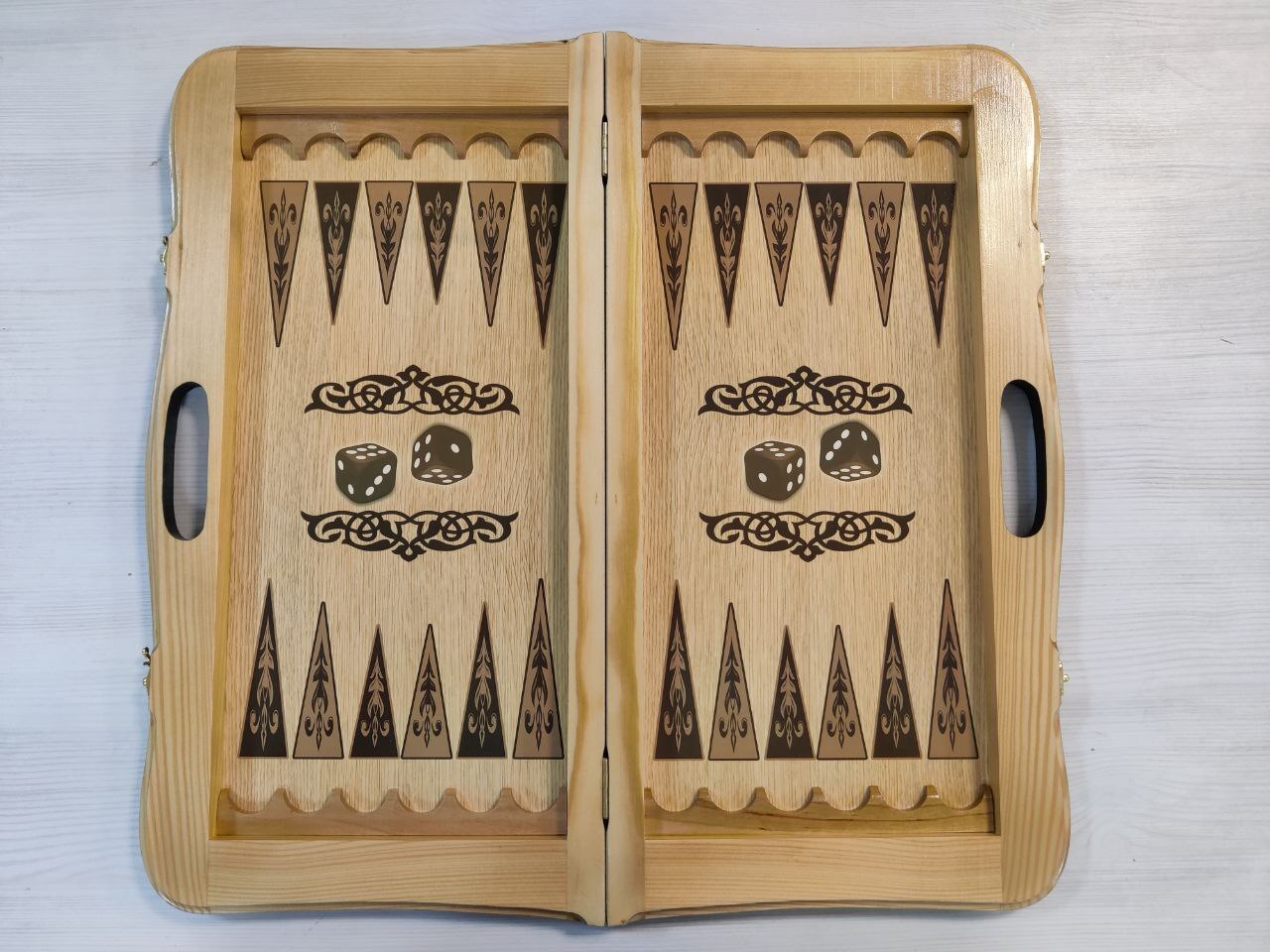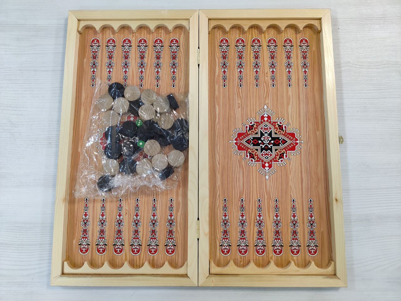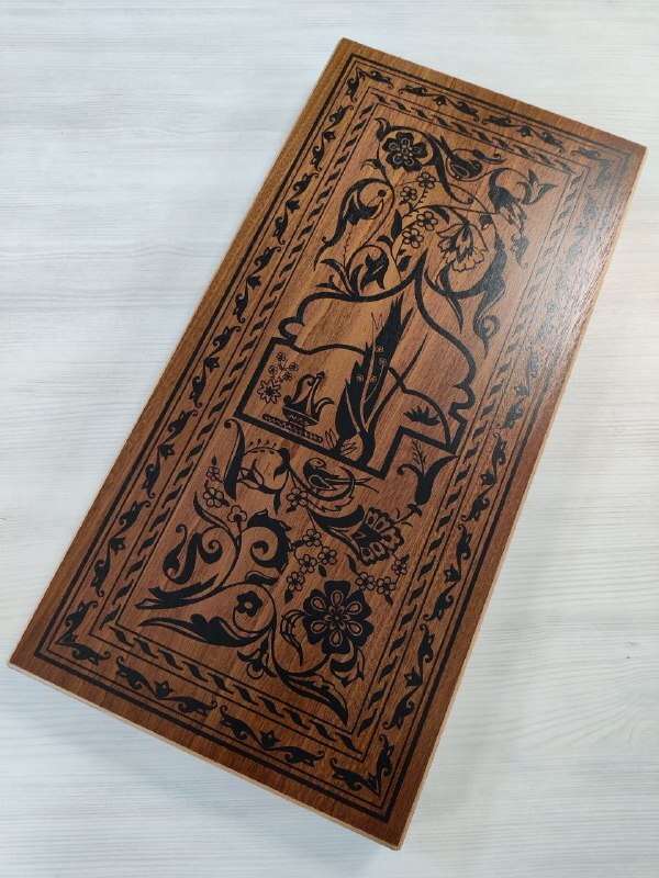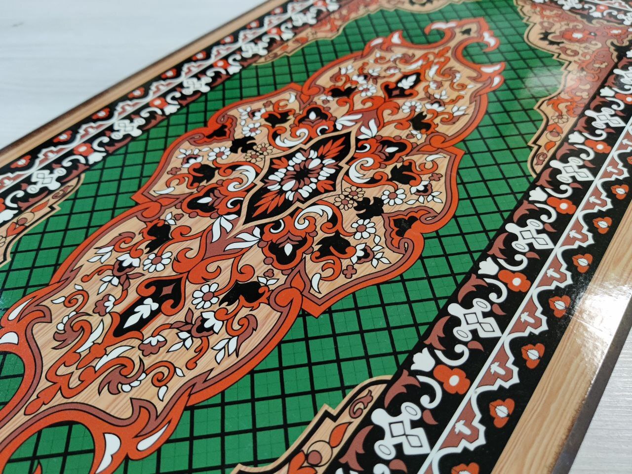 Нарды деревянные подарочные с цветным рисунком и полем для шашек Зеленый узор средние 50 см