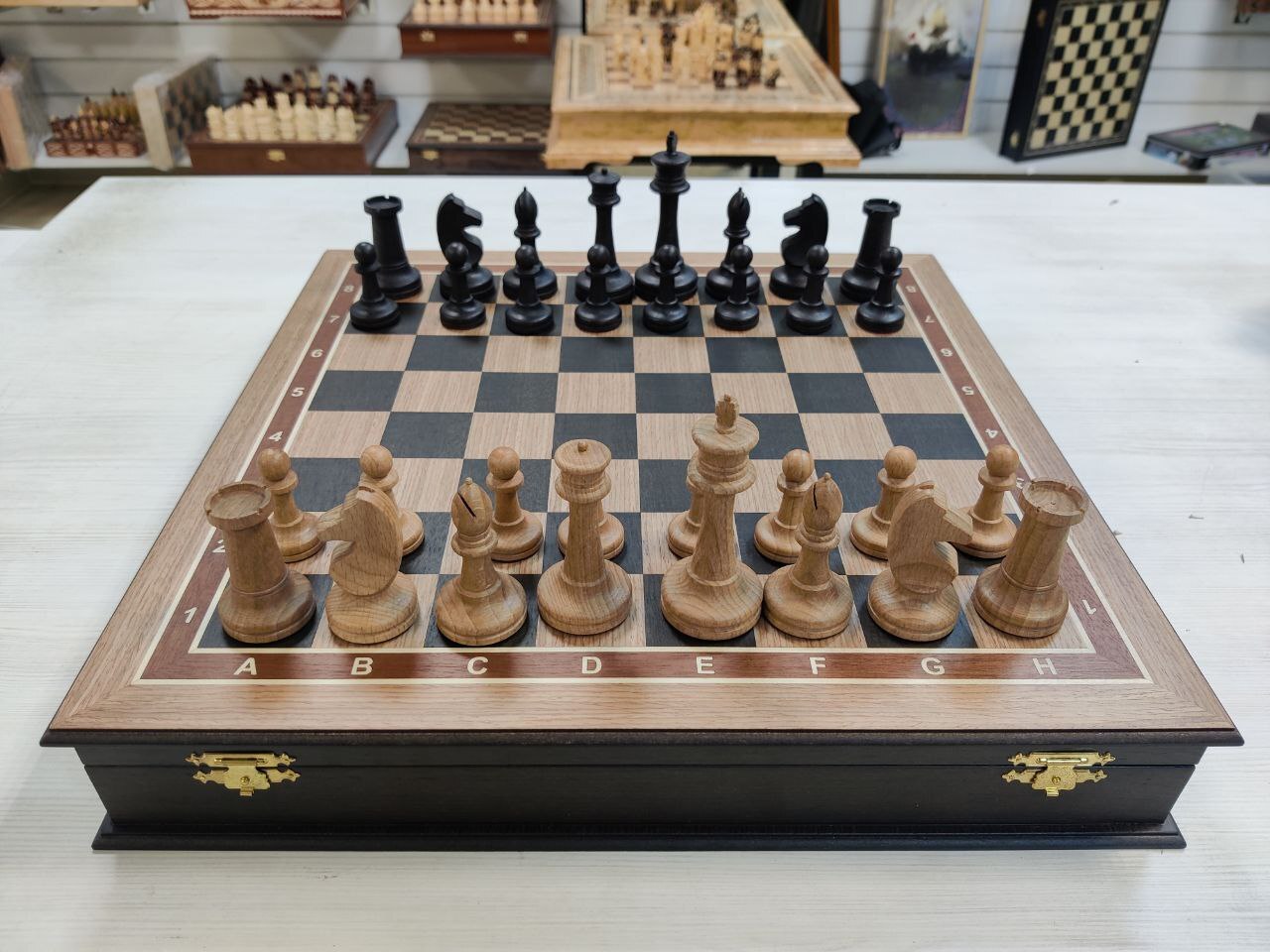 Шахматы подарочные в дубовом ларце с фигурами Стаунтон утяжеленные большие