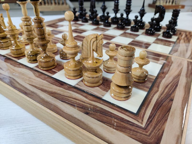 Шахматы эксклюзивные из карельской березы и клена, доска 45 на 45 см