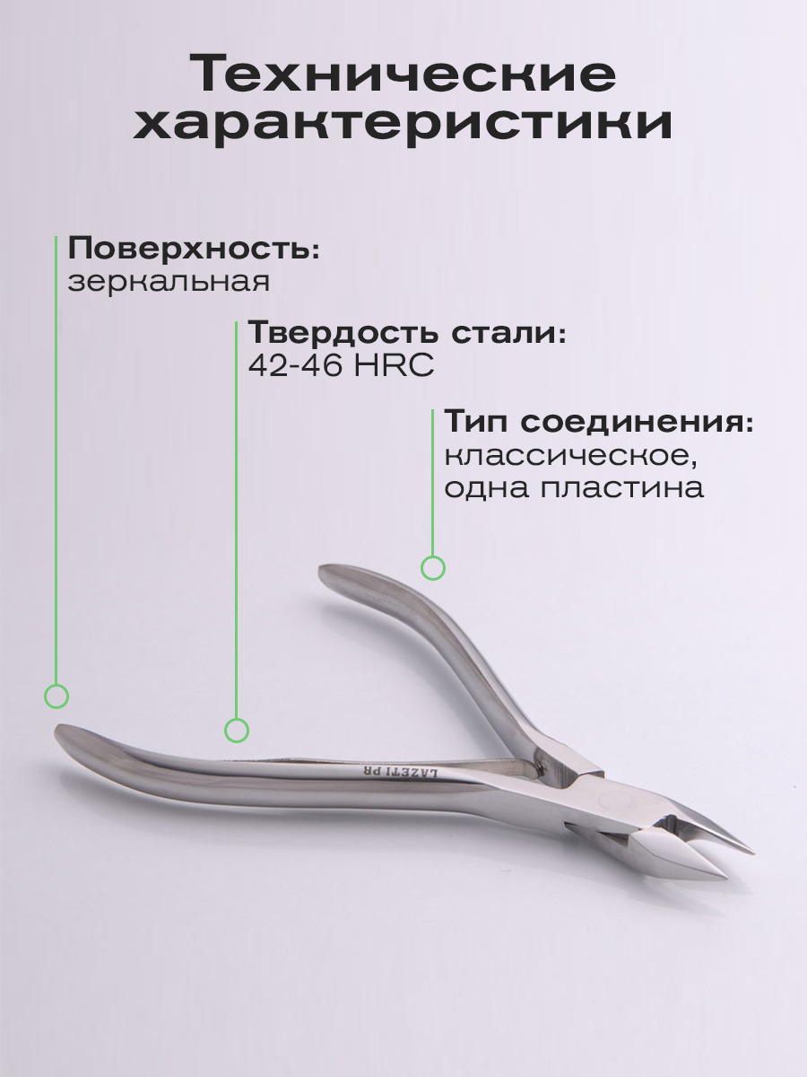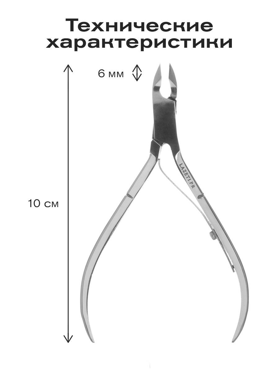 LAZETI Кусачки маникюрные для кутикулы, профессиональные с ручной заточкой, лезвия 6 мм, длина 100 мм. Арт.700