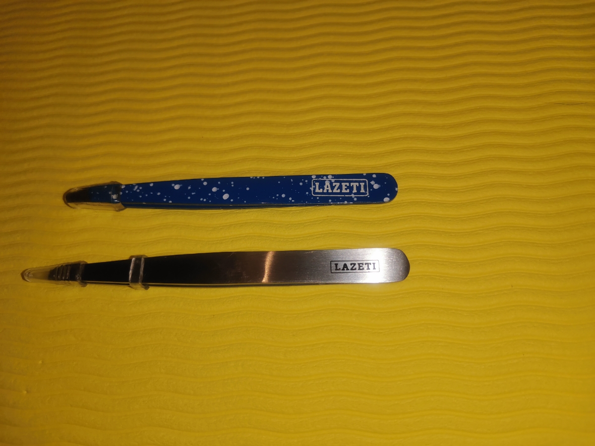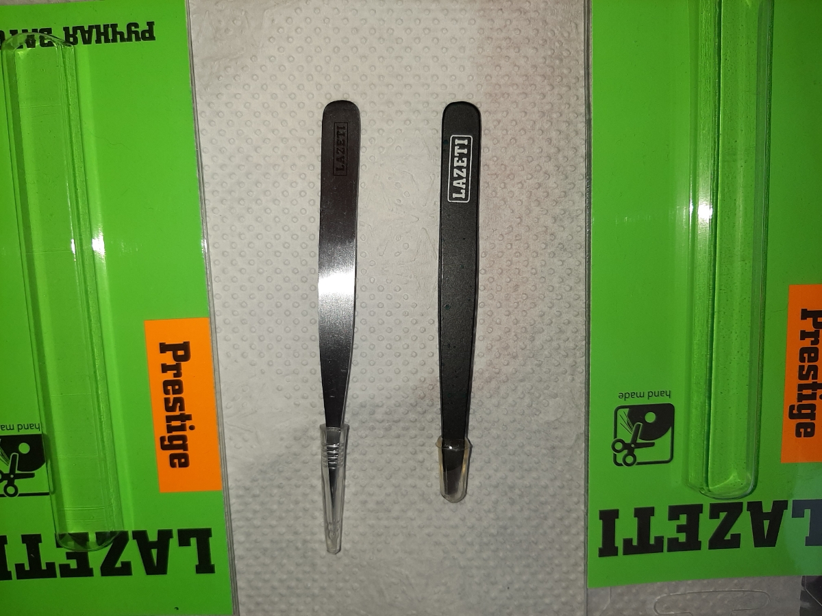 LAZETI Профессиональные пинцеты для бровей, ручная заточка, нержавеющая сталь повышенной твёрдости, twinpack 2 шт. Арт.899/858
