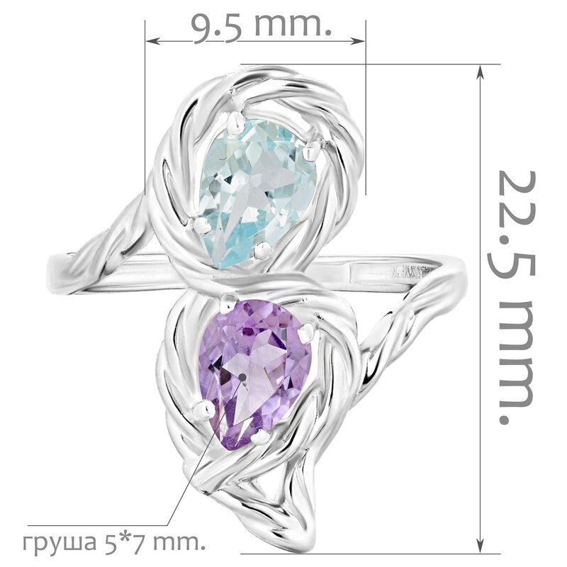 LAZURIT-ONLINE Кольцо Серебряное с натуральным Аметистом И Топазом