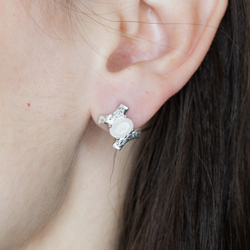 LAZURIT-ONLINE Серьги Серебряные с Лунным Камнем (натуральный)