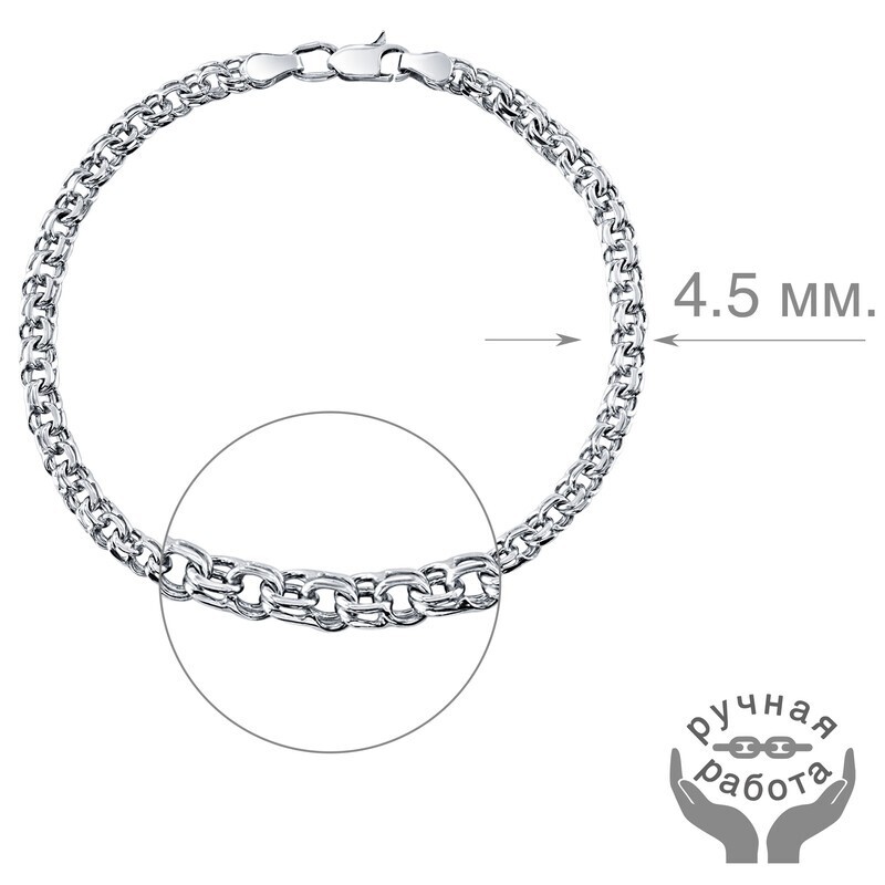 LAZURIT-ONLINE Браслет серебряный на руку - Бисмарк 4.5 мм., длина 17 см.