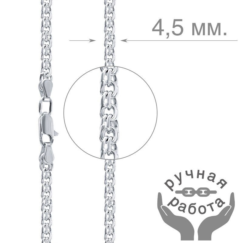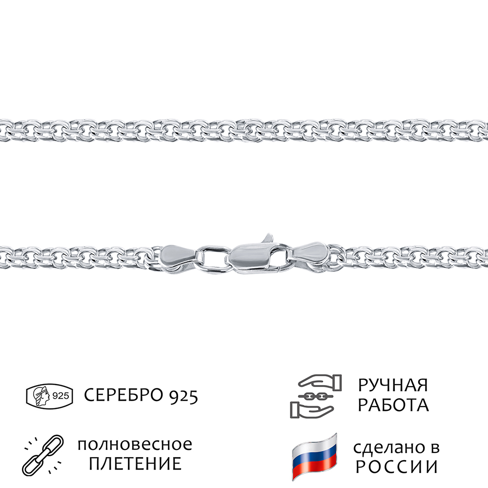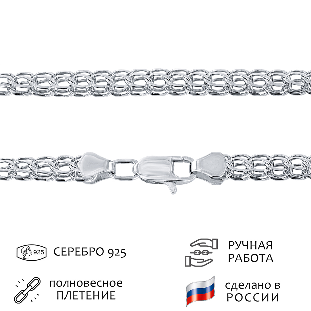 LAZURIT-ONLINE Цепочка серебряная женская на шею - Бисмарк 4.5 мм., длина 60 см.