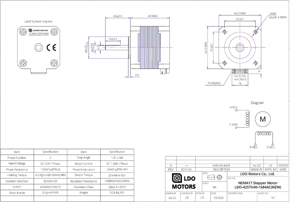 Шаговый двигатель для 3D-принтера, LDO-42STH40-1684AC Nema 17, 1.8 для Voron 0 2,4 BLV MGM Cube
