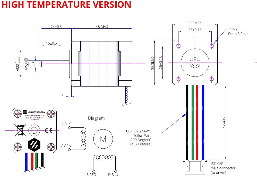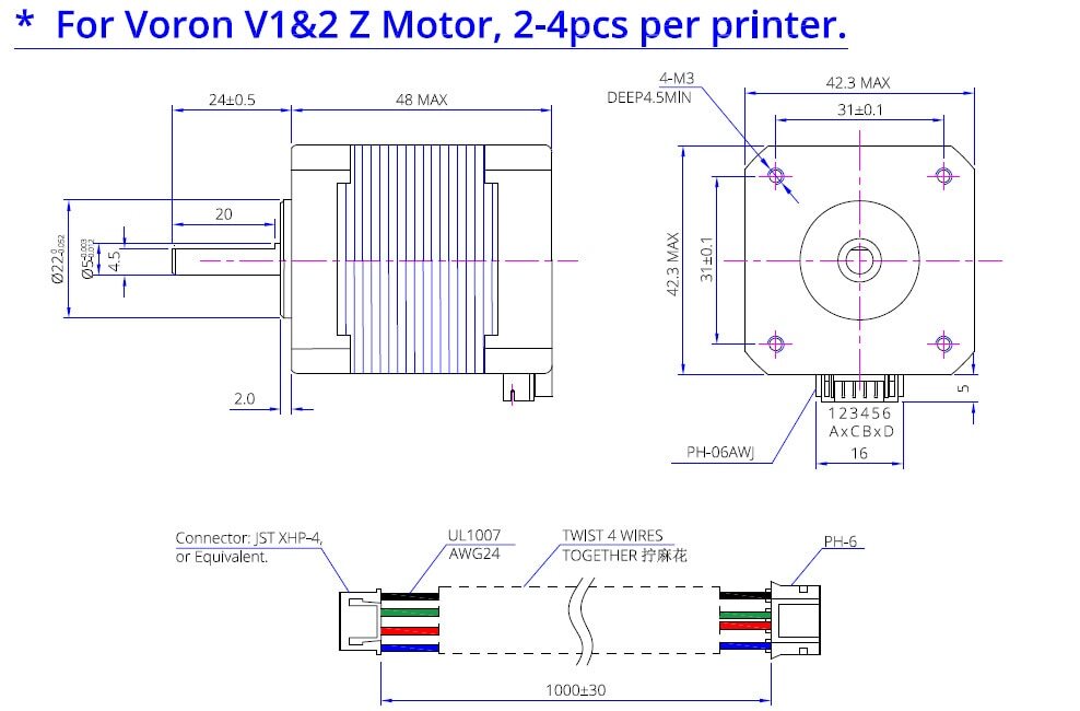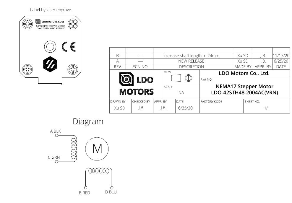 Шаговый двигатель для 3D-принтера, LDO-42STH48-2004AC(VRN) 1,8 Nema 17 Cube BLV VORON