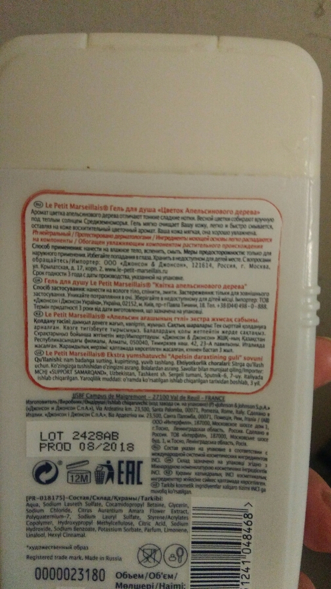 Le Petit Marseillais Organic Гель для душа Персик и Нектарин, 250 мл
