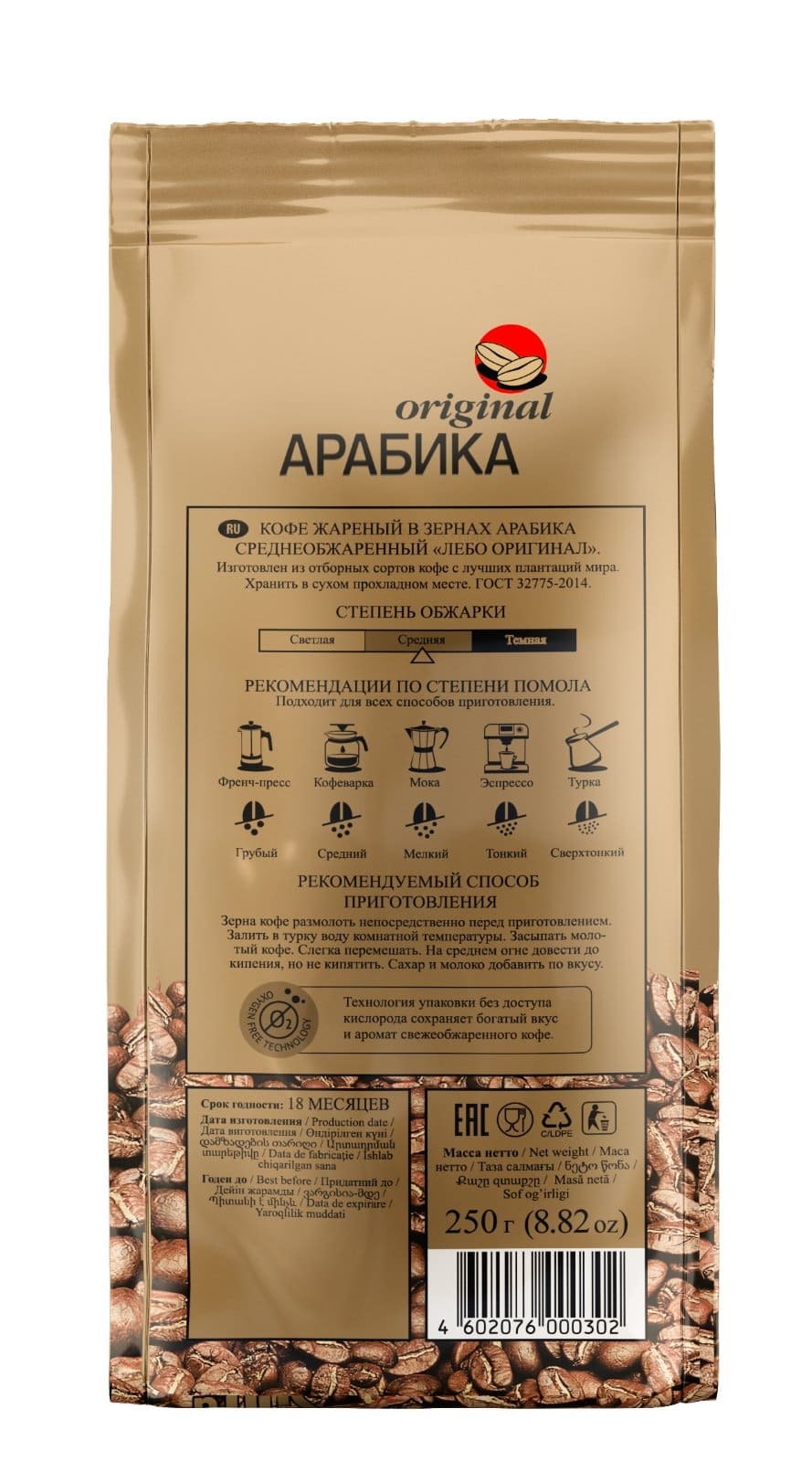 Кофе в зернах LEBO Original Арабика, 250 г