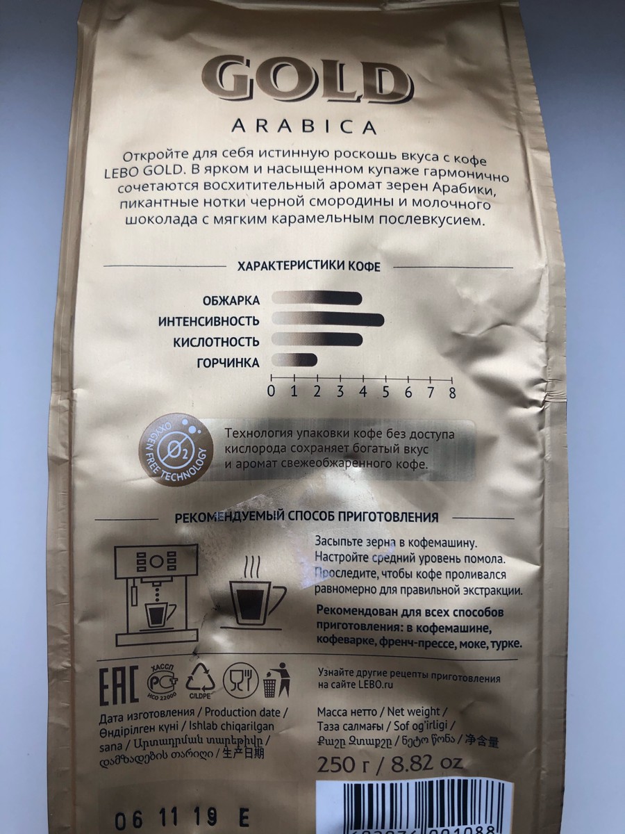 Кофе в зернах LEBO Gold Арабика, 1000 г