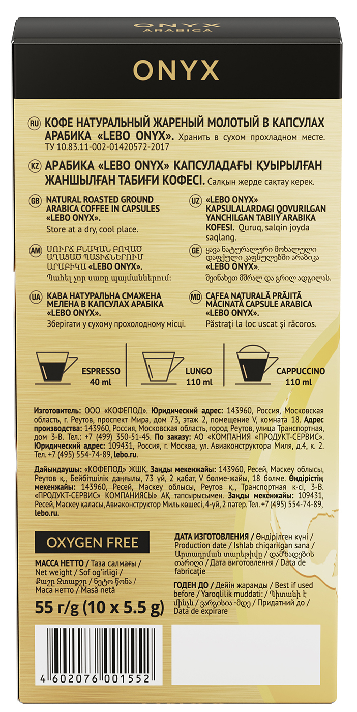 Кофе в капсулах LEBO Onyx формата Nespresso