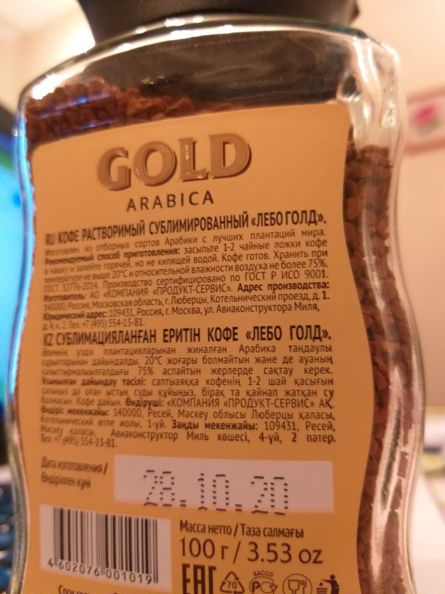 Кофе растворимый LEBO Gold 100 г