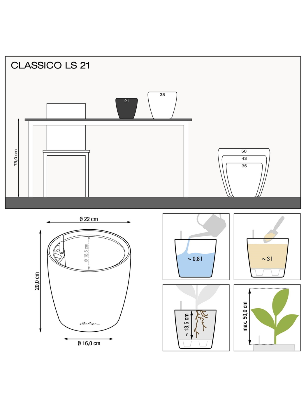 Кашпо с системой автополива Lechuza CLASSICO LS , 20 см х 22 см