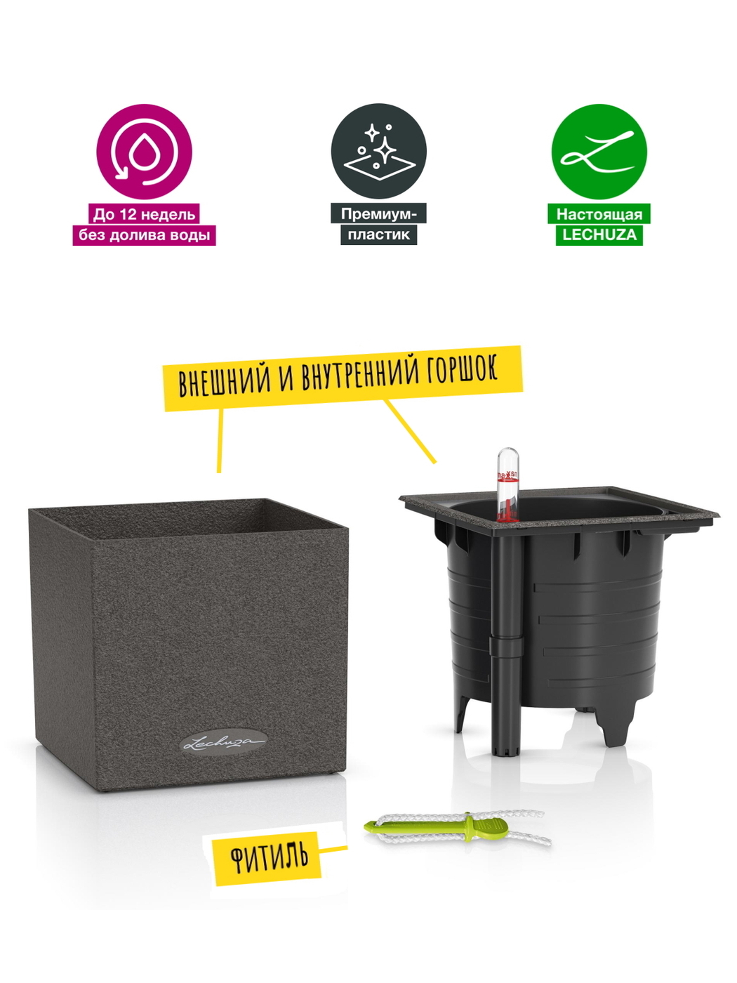 Кашпо с системой автополива Lechuza Canto (Lechuza) Stone 14 , 14 см х 14 см х 14 см, 1шт