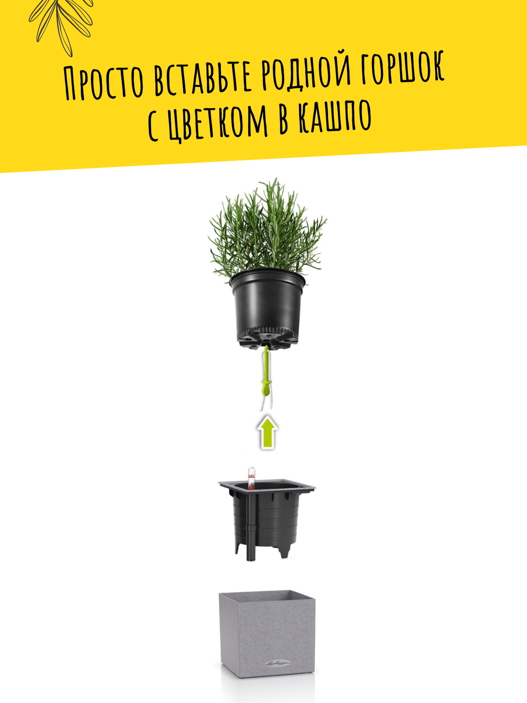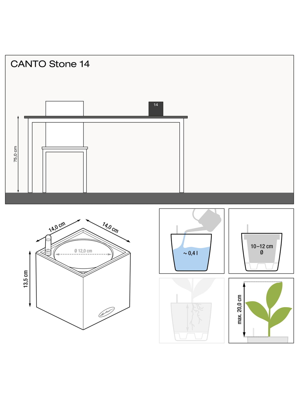 Кашпо с системой автополива Lechuza CANTO Stone 14 , 13.5 см х 14 см х 14 см