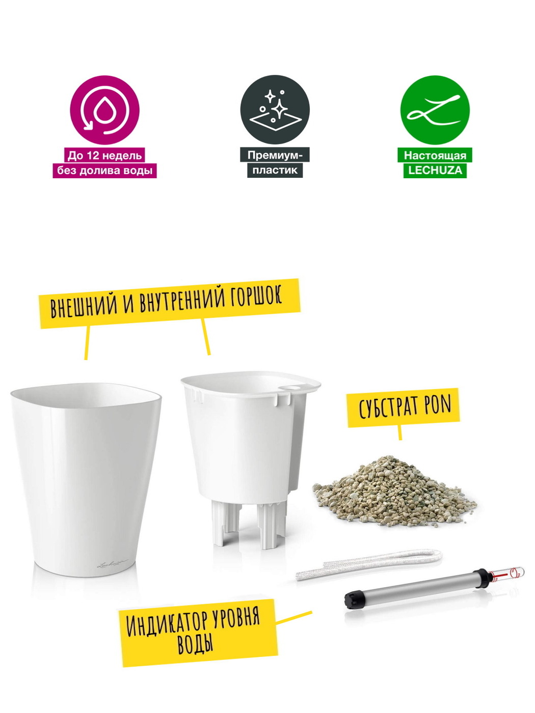 Кашпо с системой автополива Lechuza DELTINI , 19 см х 15 см х 15 см