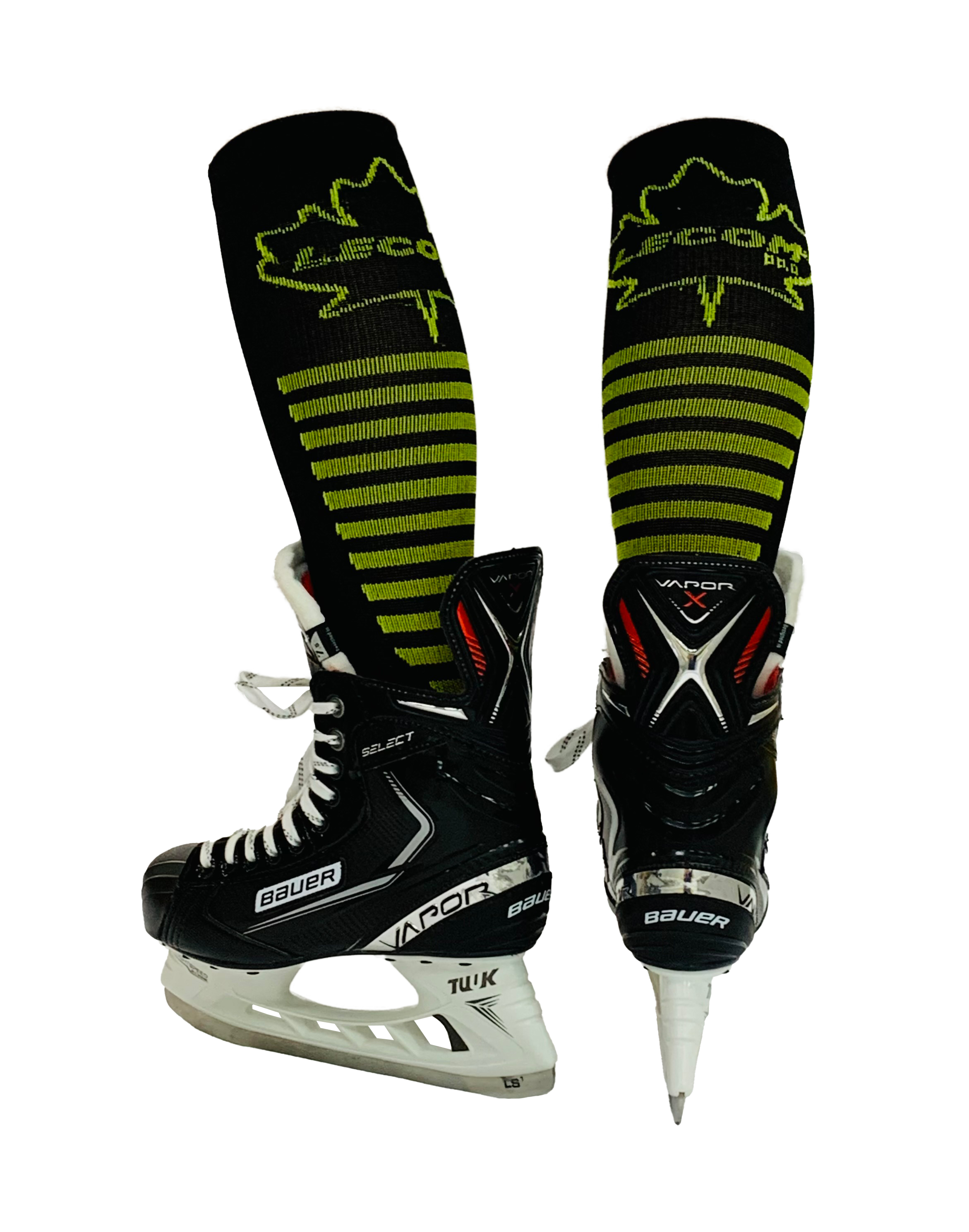 Гольфы хоккейные компрессионные LECOMPRO черно-лаймовые р.39-42