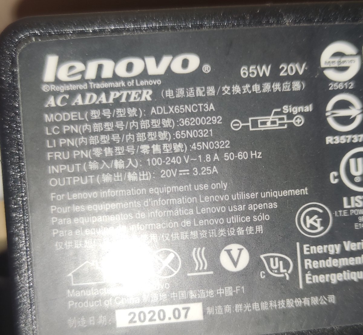 Блок питания для ноутбука Lenovo Yoga 20V 3.25A 65W