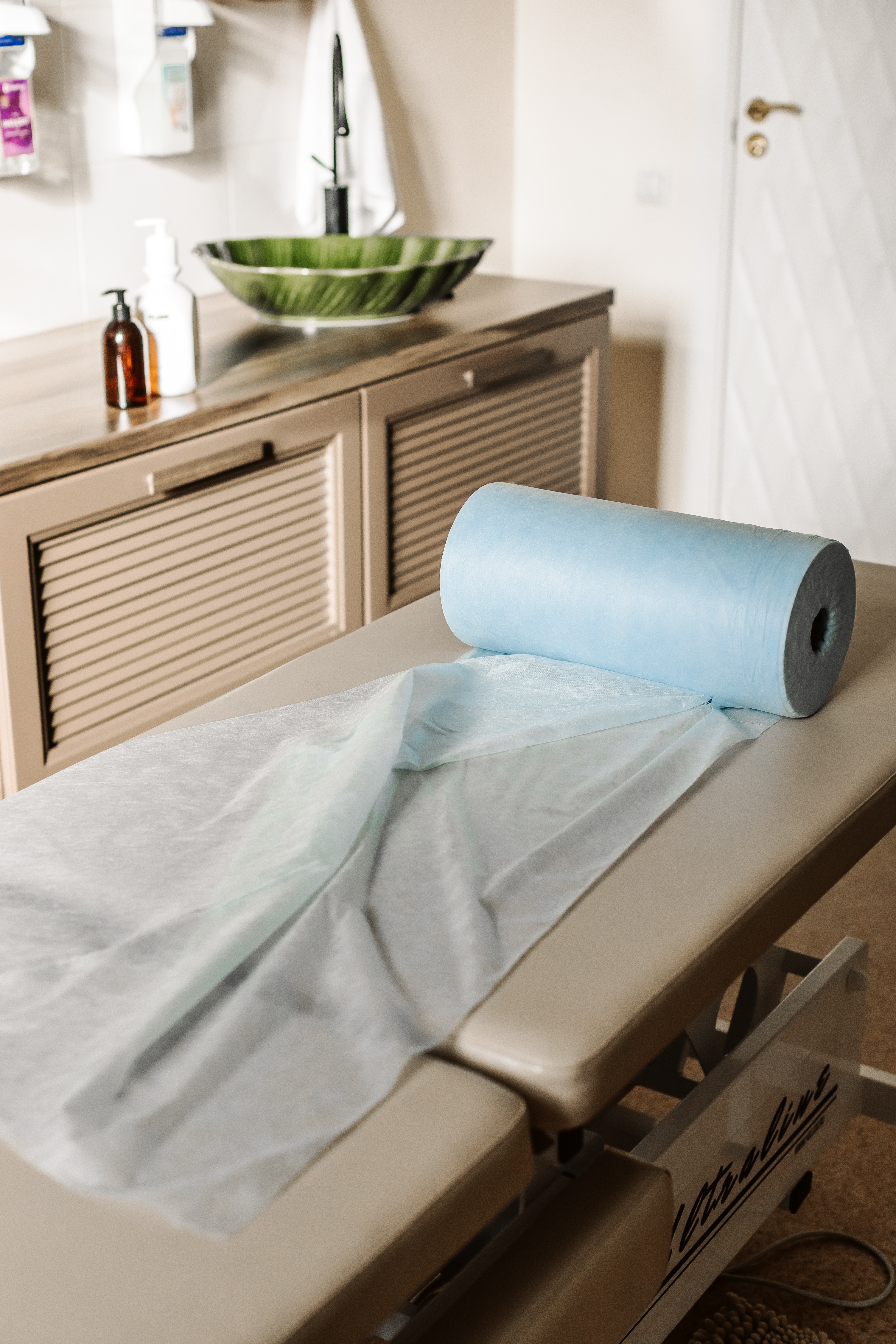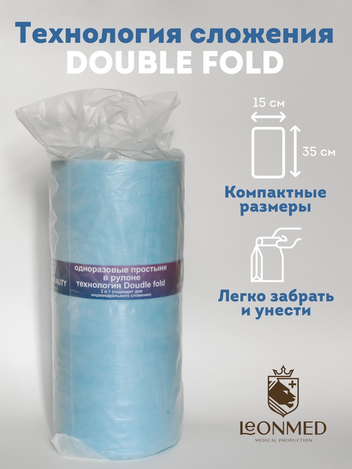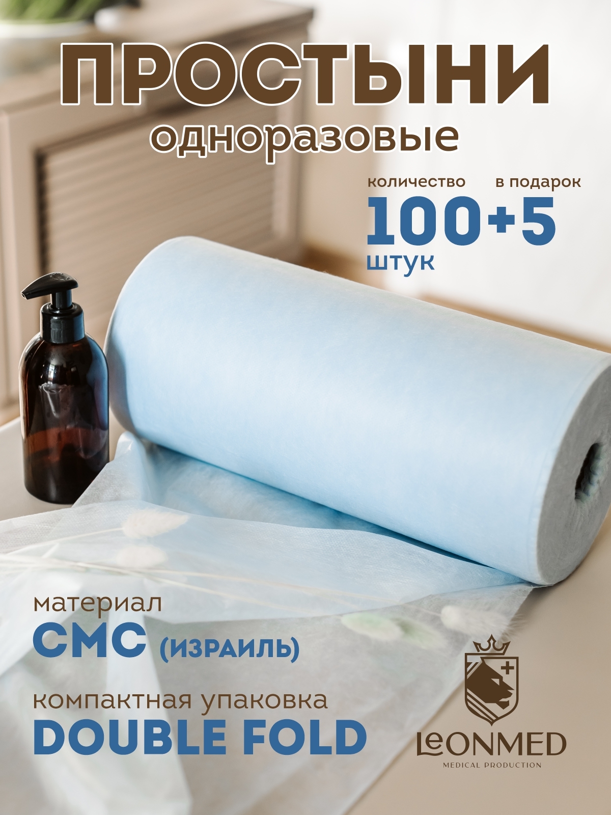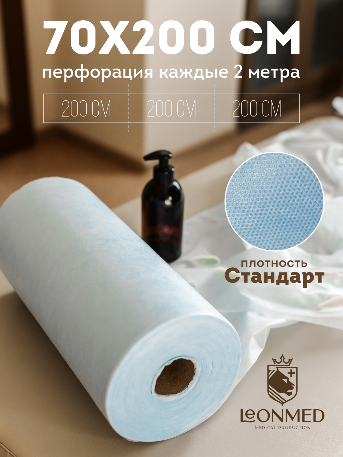 LEONMED Простыни одноразовые в рулоне 70Х200 см, 100шт+5 с перфорацией, голубой