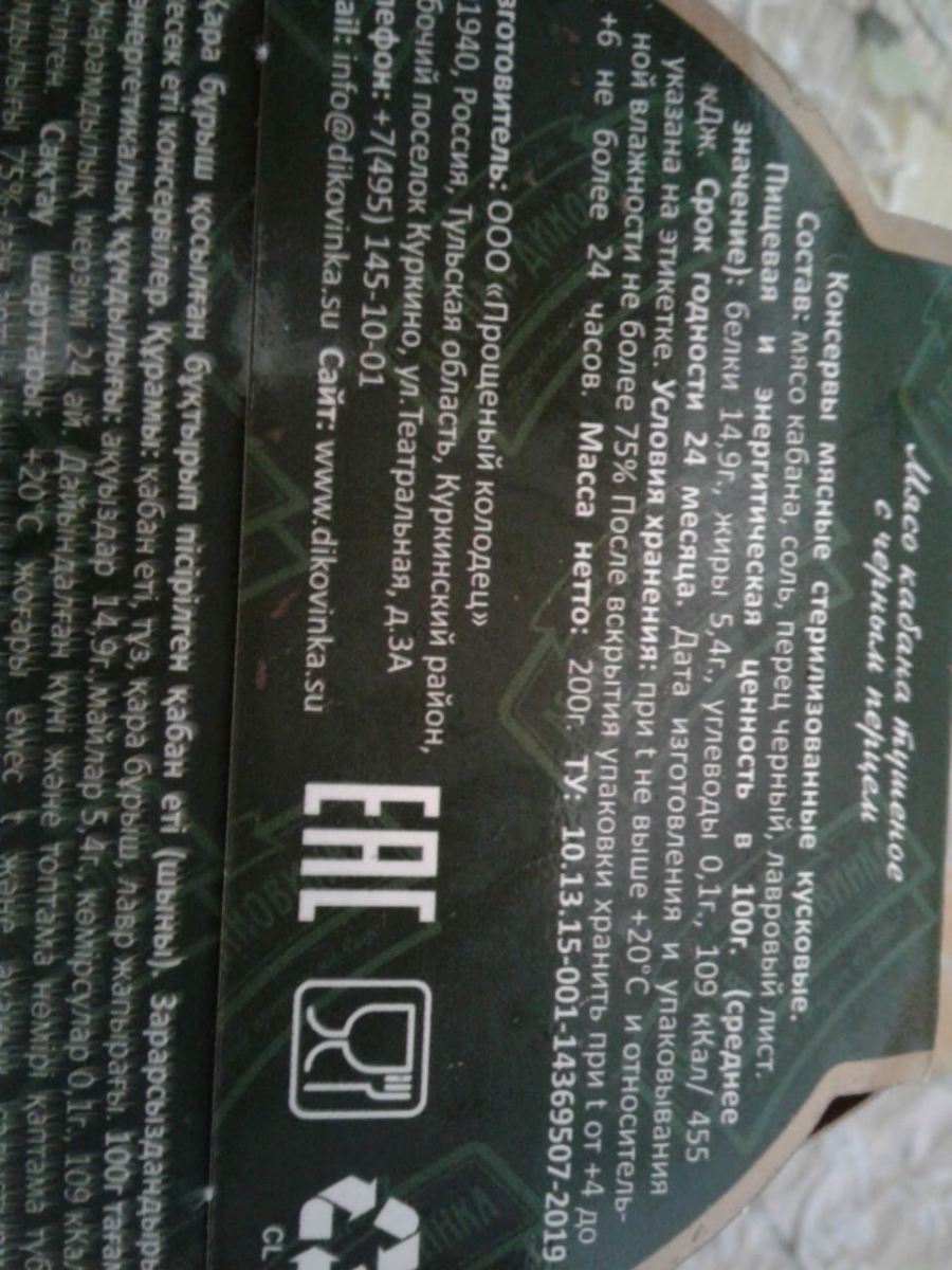 Лесная Диковинка Мясо кабана тушеное с черным перцем 200 г