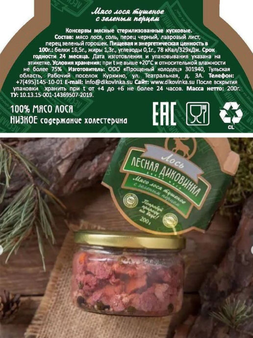 Лесная Диковинка Тушёное мясо лося с зелёным перцем, 200 г (ст.б.)