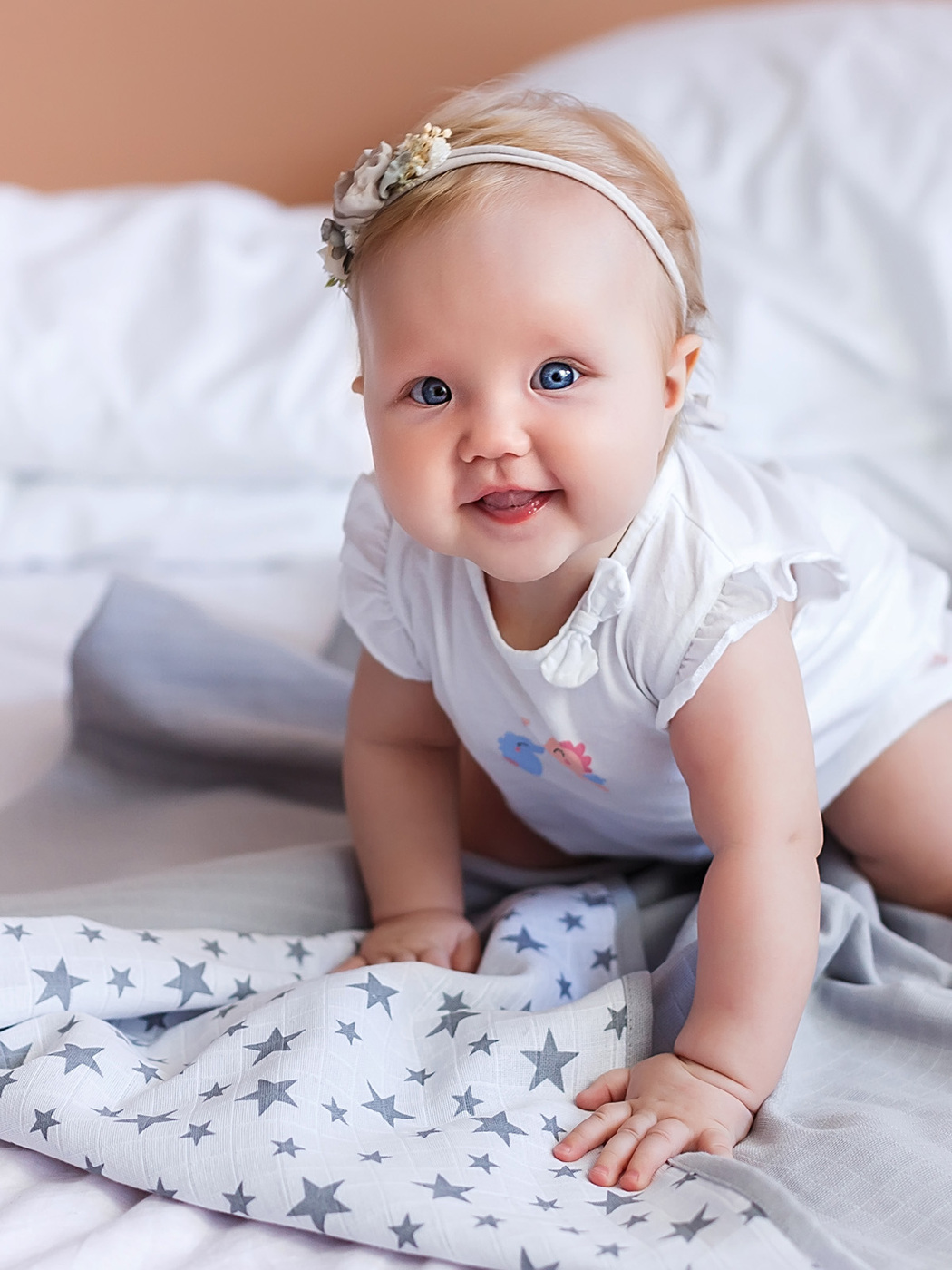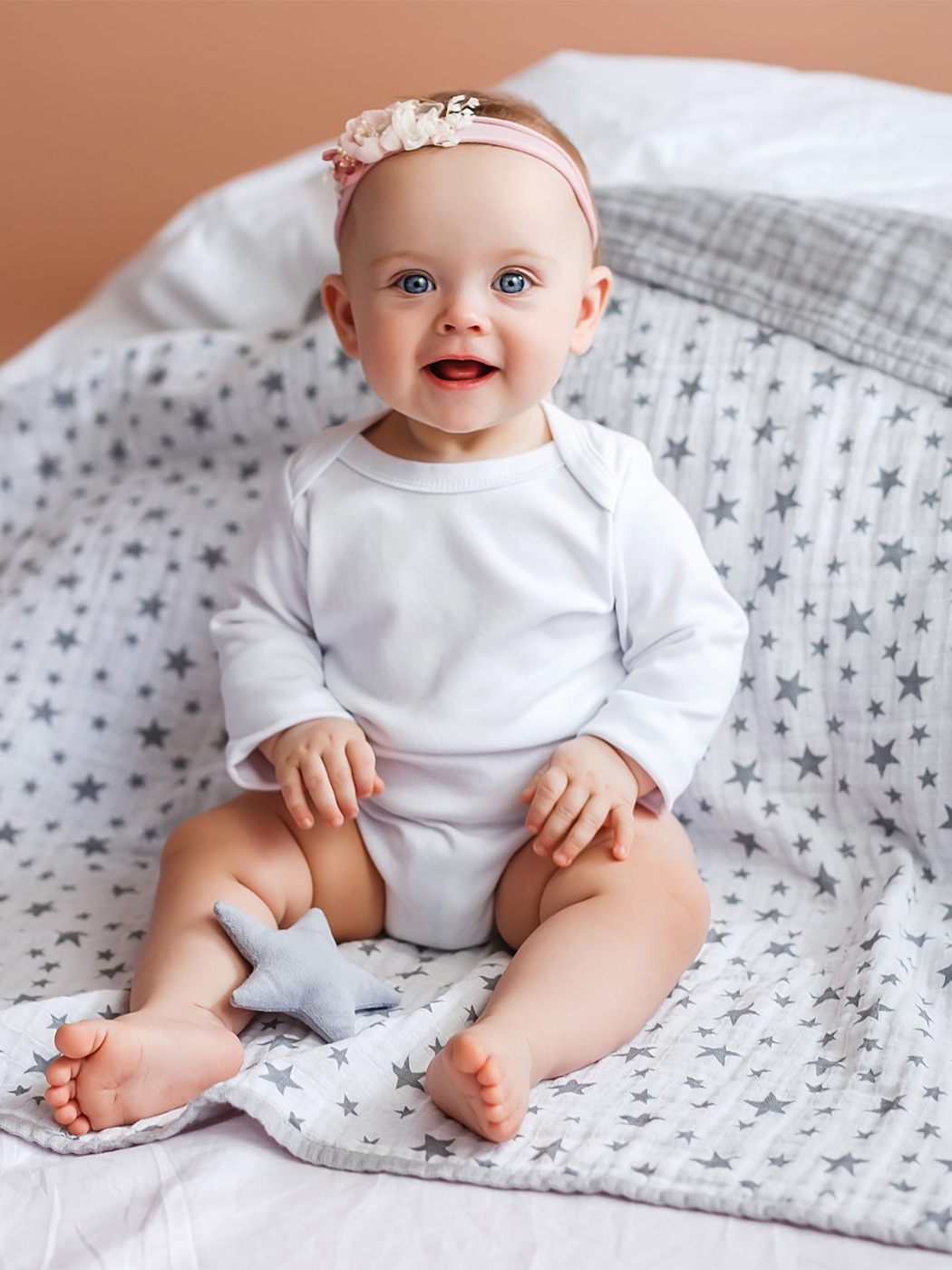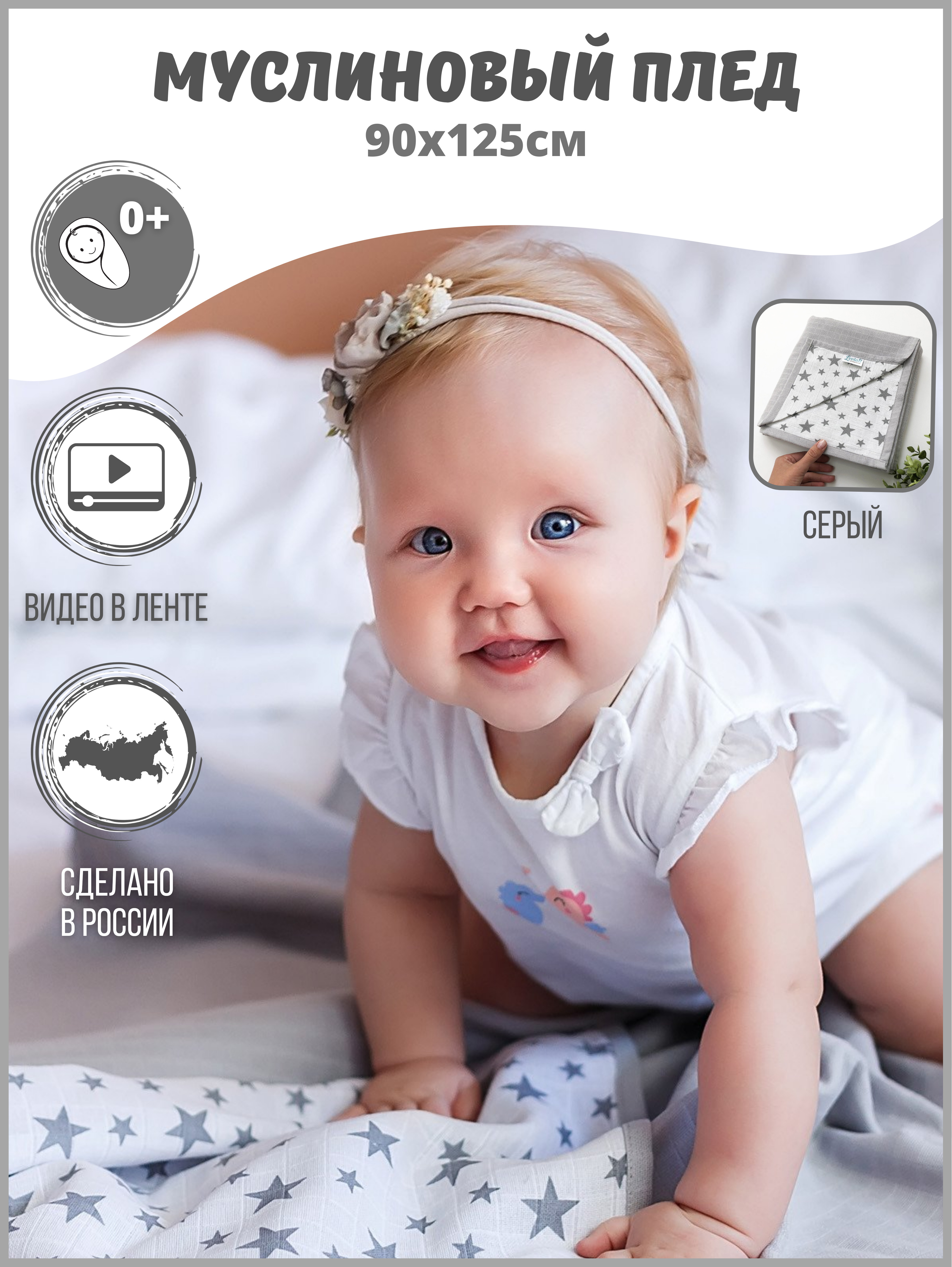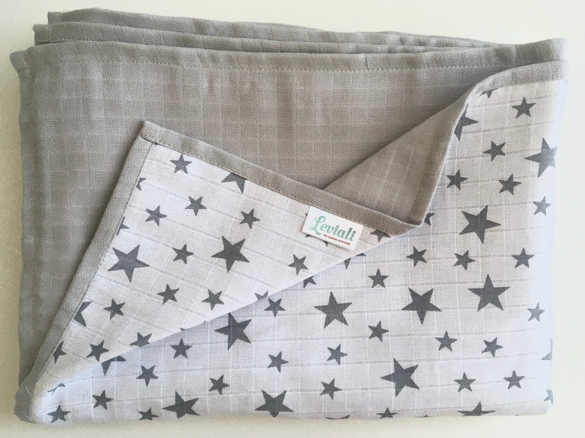 Муслиновый плед "Сияющие звездочки"/серый