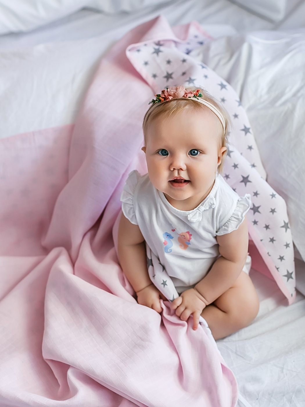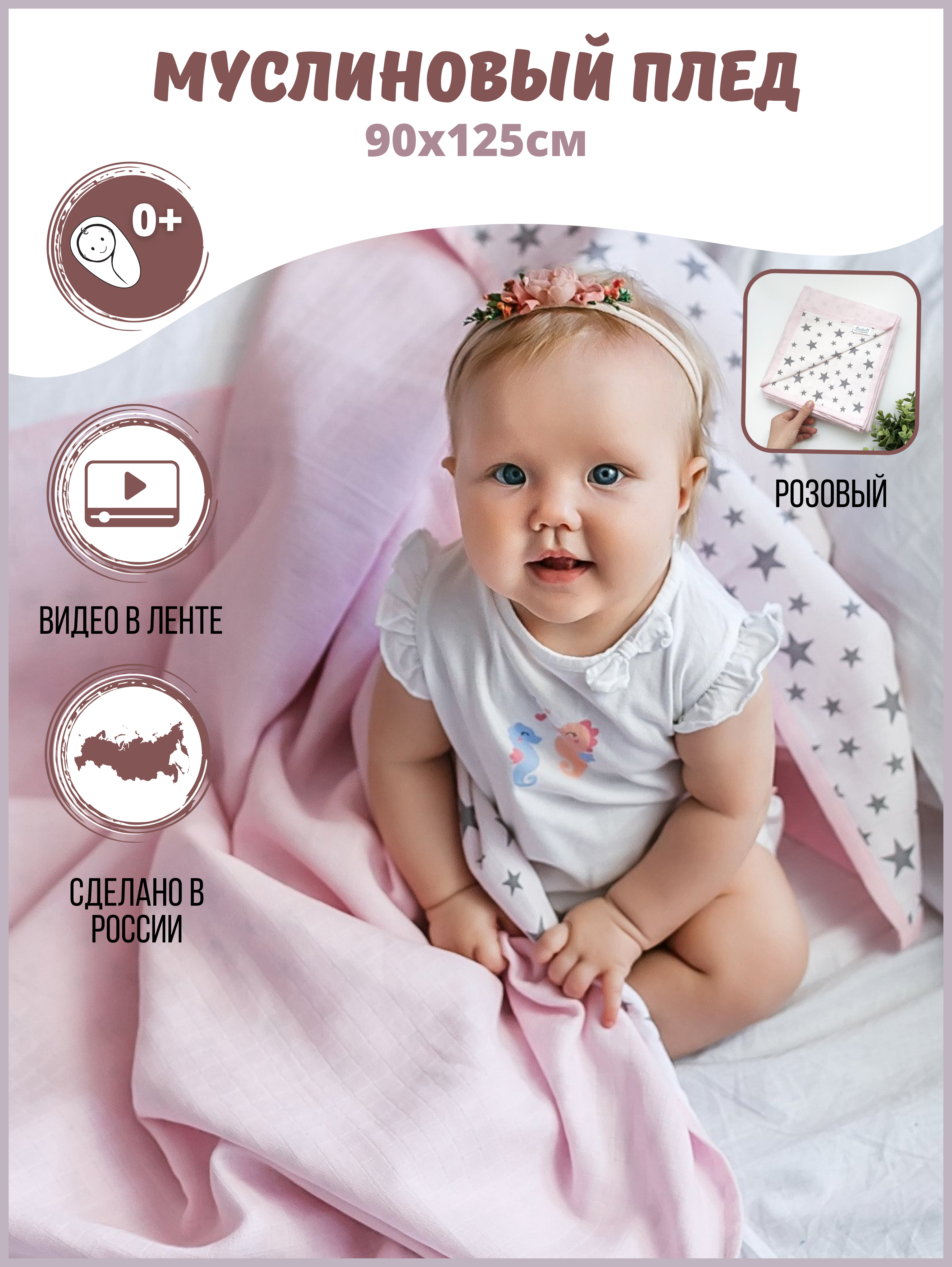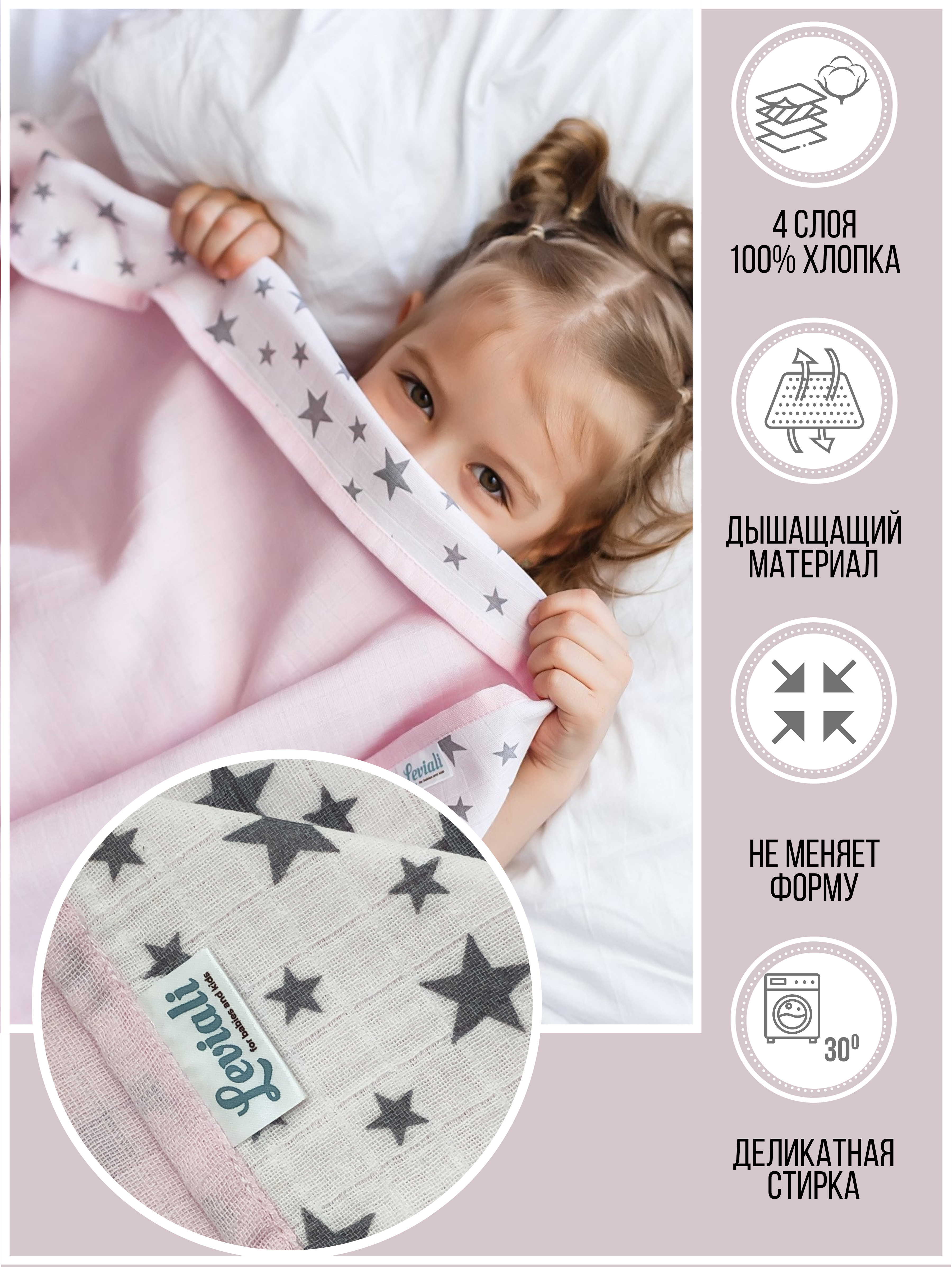 Муслиновый плед "Сияющие звездочки"/розовый