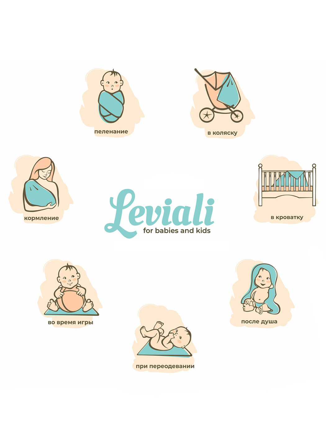 Набор платочков-слюнявчиков из муслина Leviali, 5шт