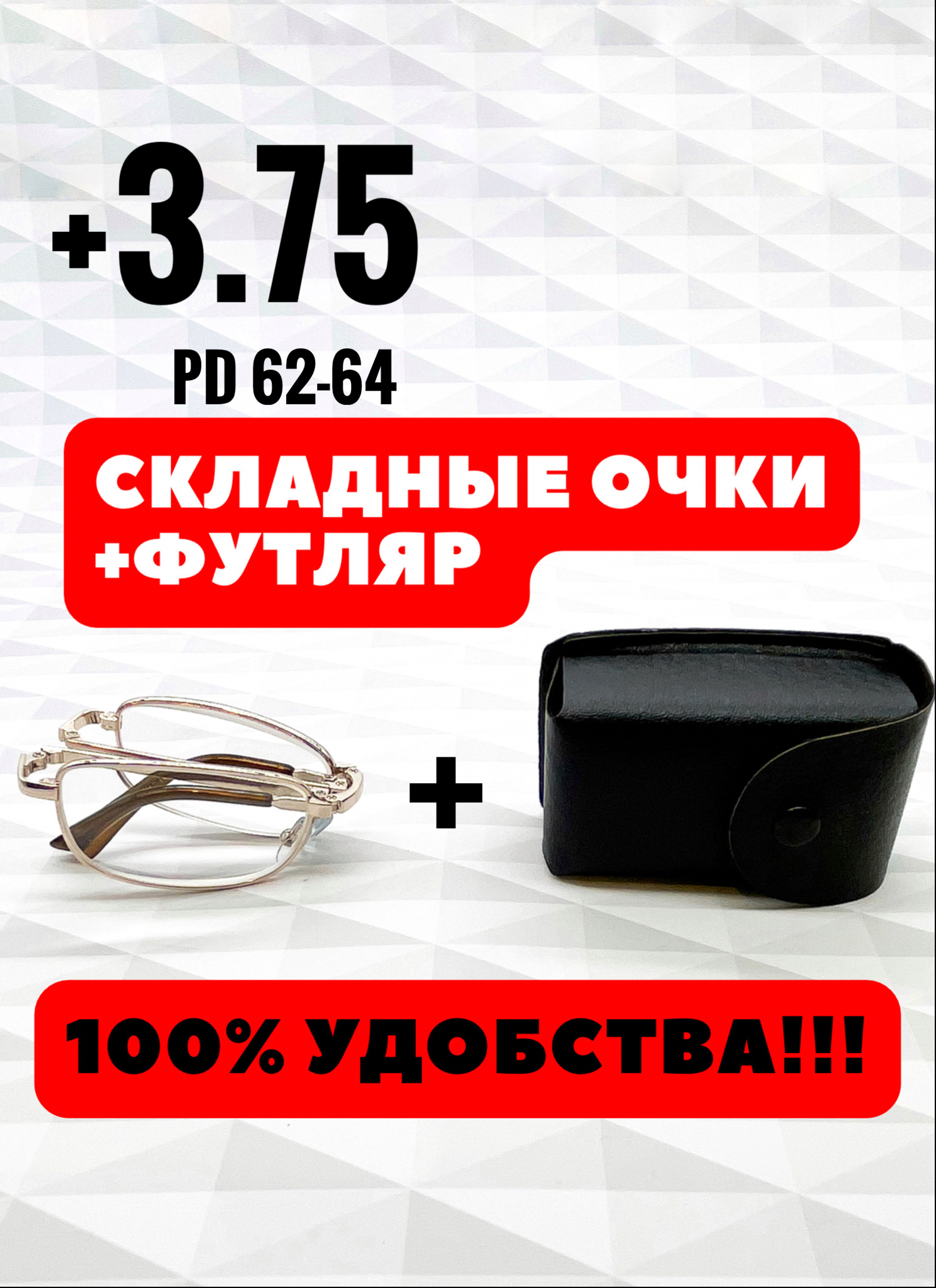 Очки для зрения +3.75 / готовые очки плюс / очки с футляром / очки складные / очки для чтения