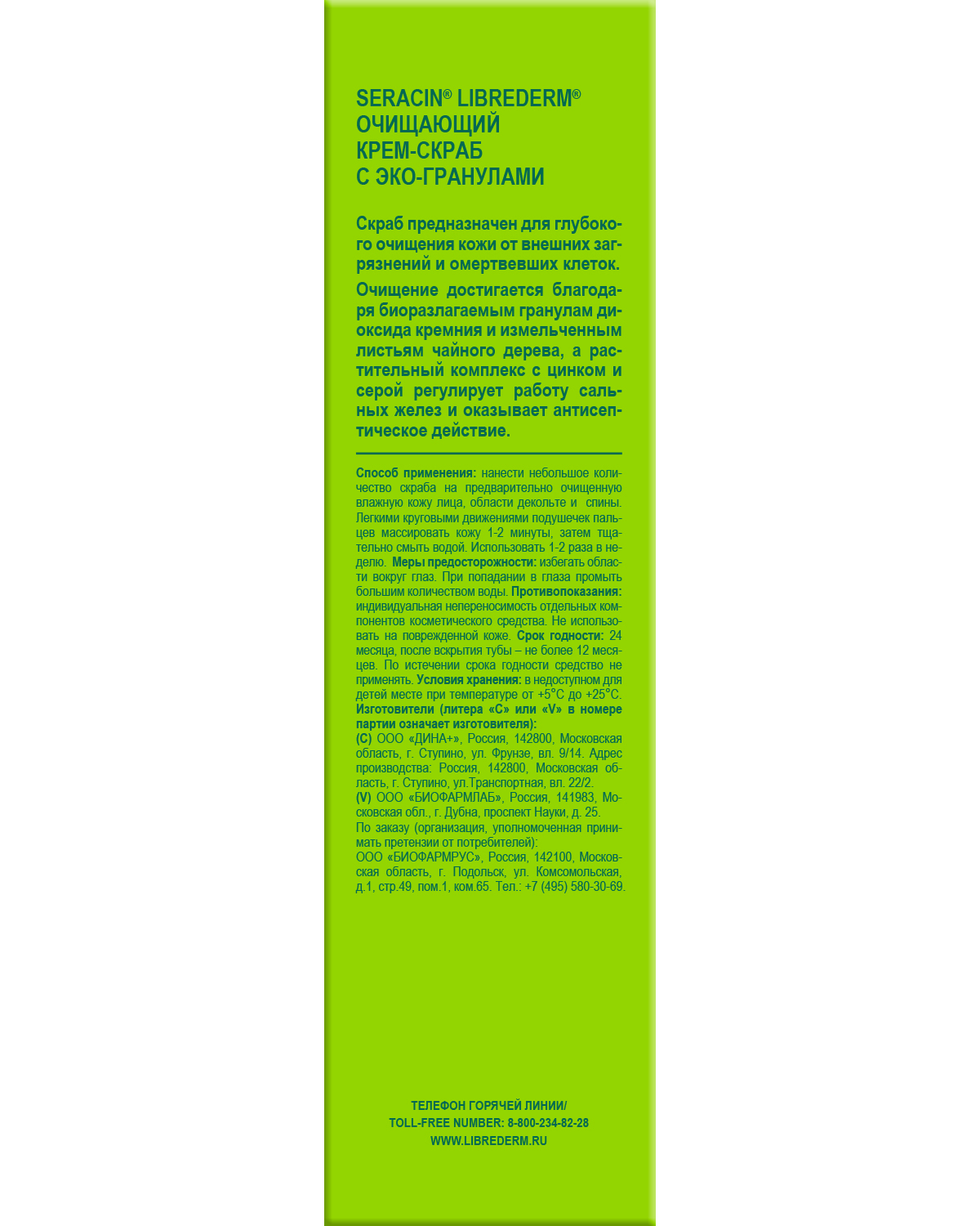 LIBREDERM СЕРАЦИН Очищающий крем-скраб с эко-гранулами 75 мл