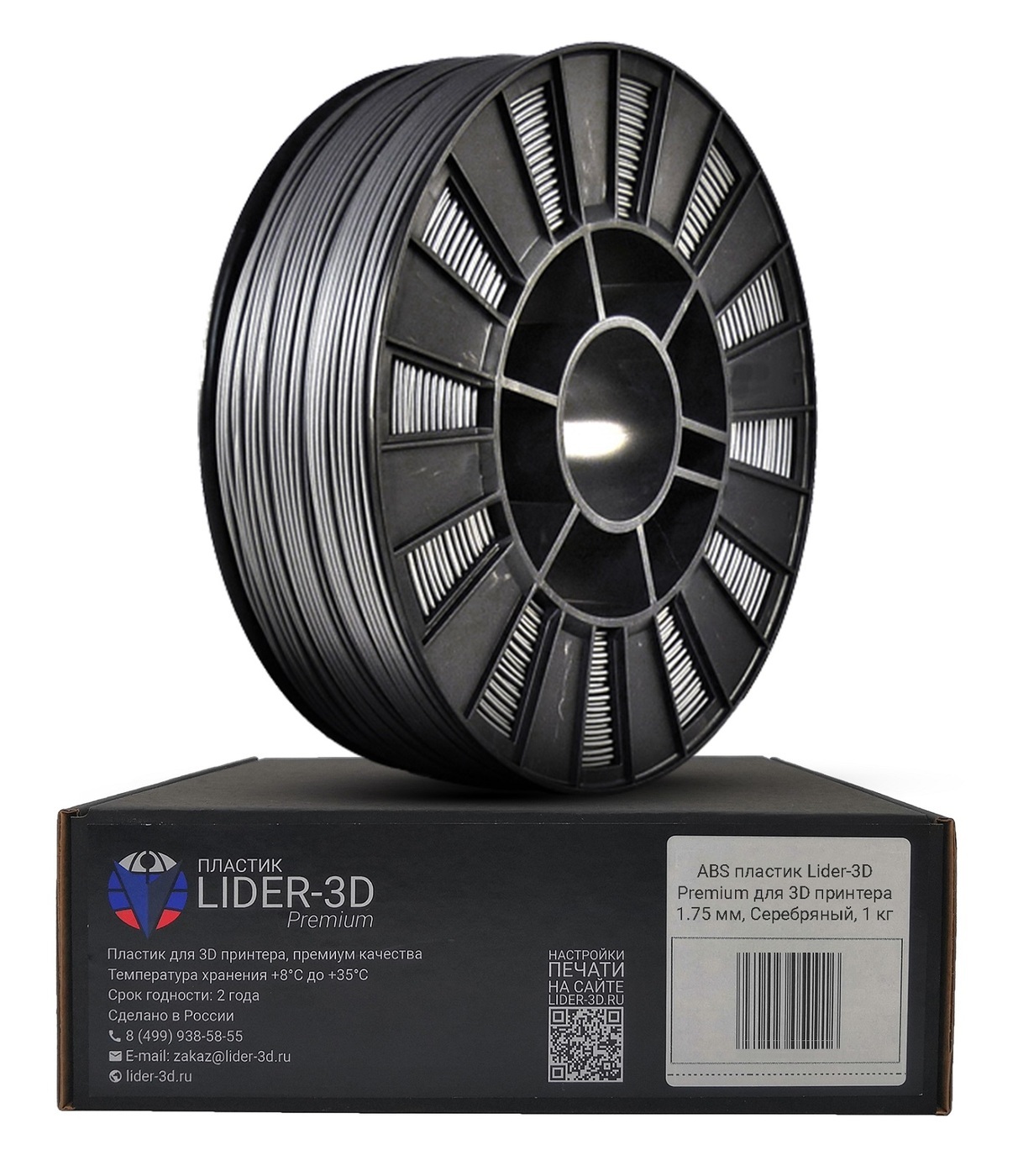 ABS пластик Lider-3D Premium для 3D принтера 1.75мм серебряный 1кг