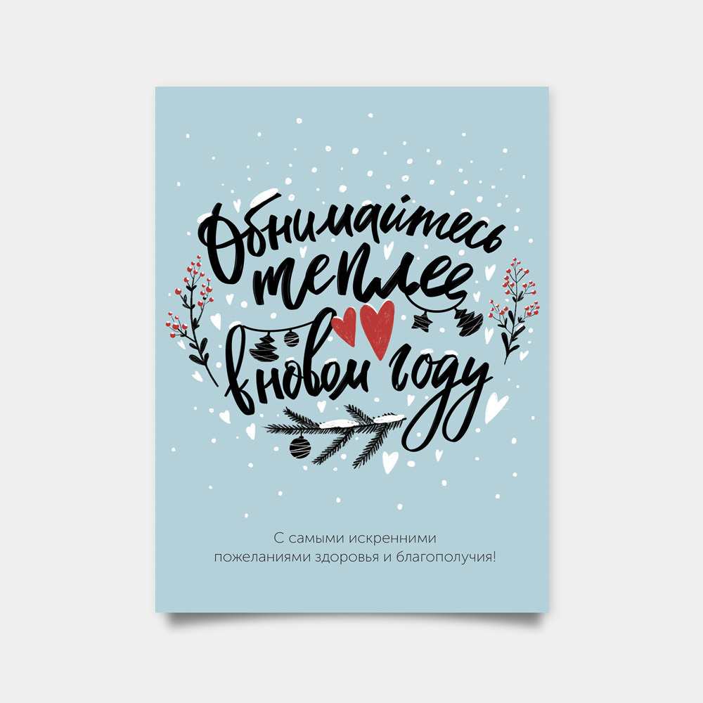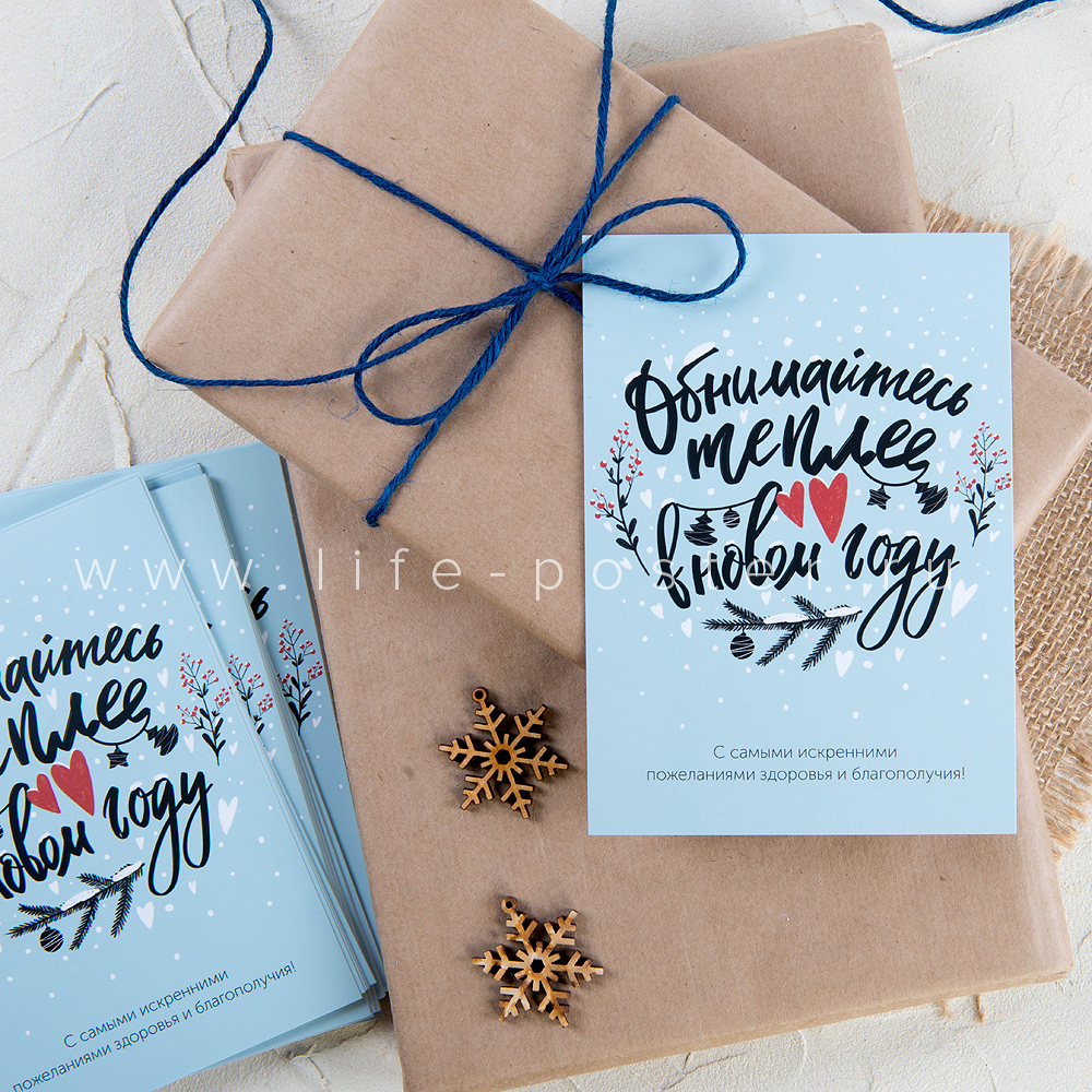 Новогодняя открытка "Обнимайтесь теплее" 10*15 см, открытка на Новый год