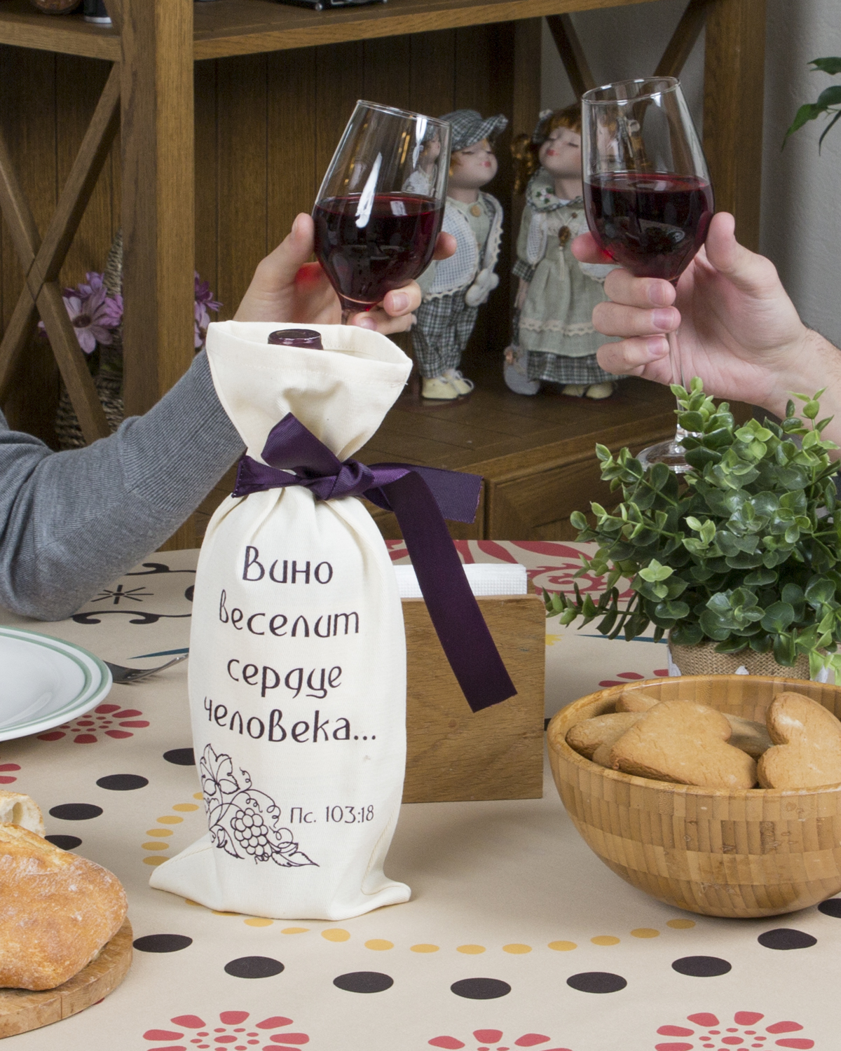 Мешок подарочный для бутылки вина Вино веселит Сердце человека lil'impressions