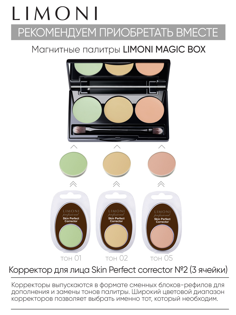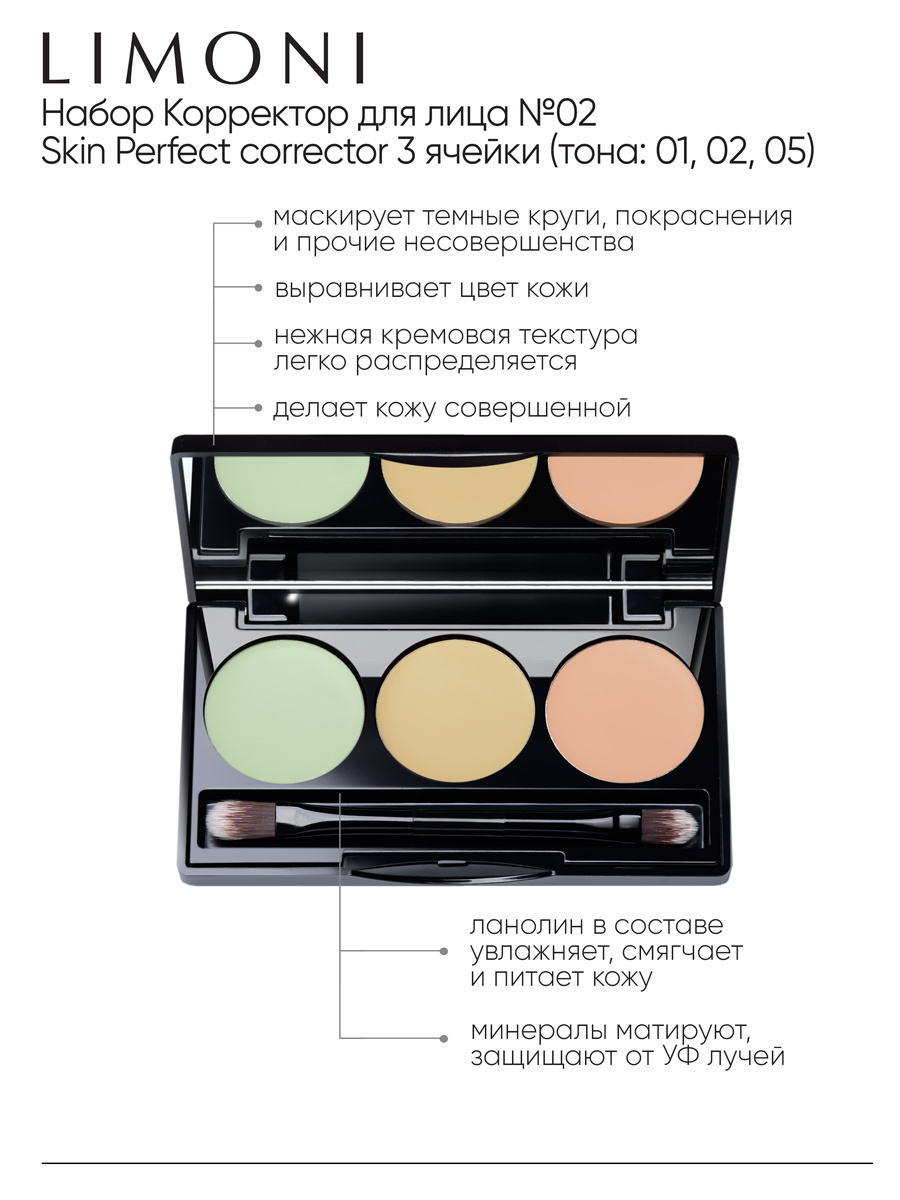 LIMONI Корректор для лица палетка набор №2 увлажняющий Италия / Оттенки 01, 02, 05 / Витамин Е / Skin Perfect Corrector