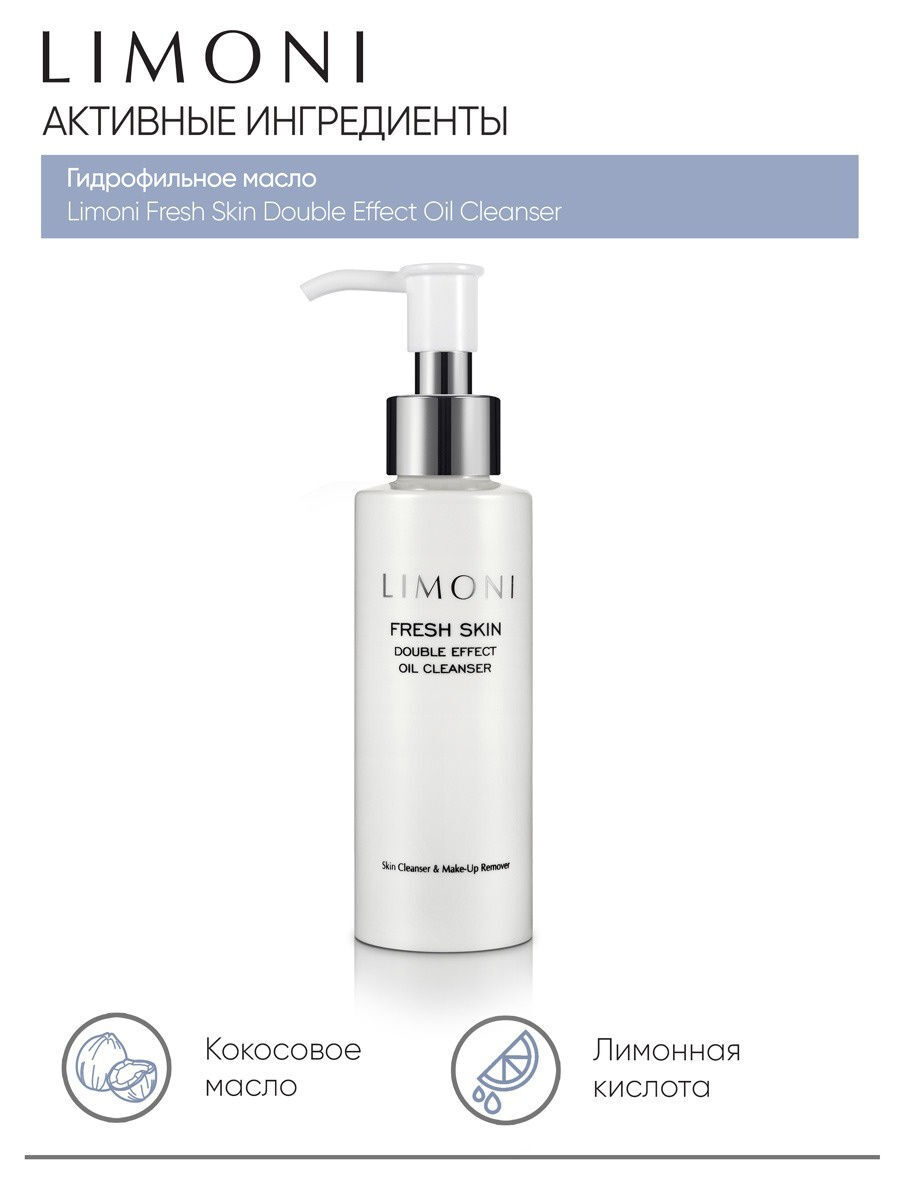 LIMONI Гидрофильное масло для умывания Корея / Снятие макияжа / Кокосовое масло / Double Effect Oil Cleanser 120 мл