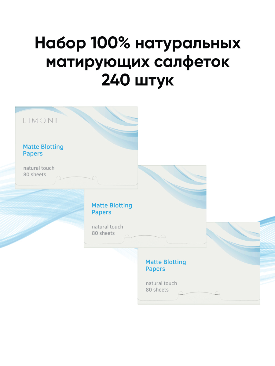 LIMONI Матирующие салфетки для лица 100% натуральные с зеленым чаем / Набор 3 шт. Matte Blotting Papers 80 шт, белый