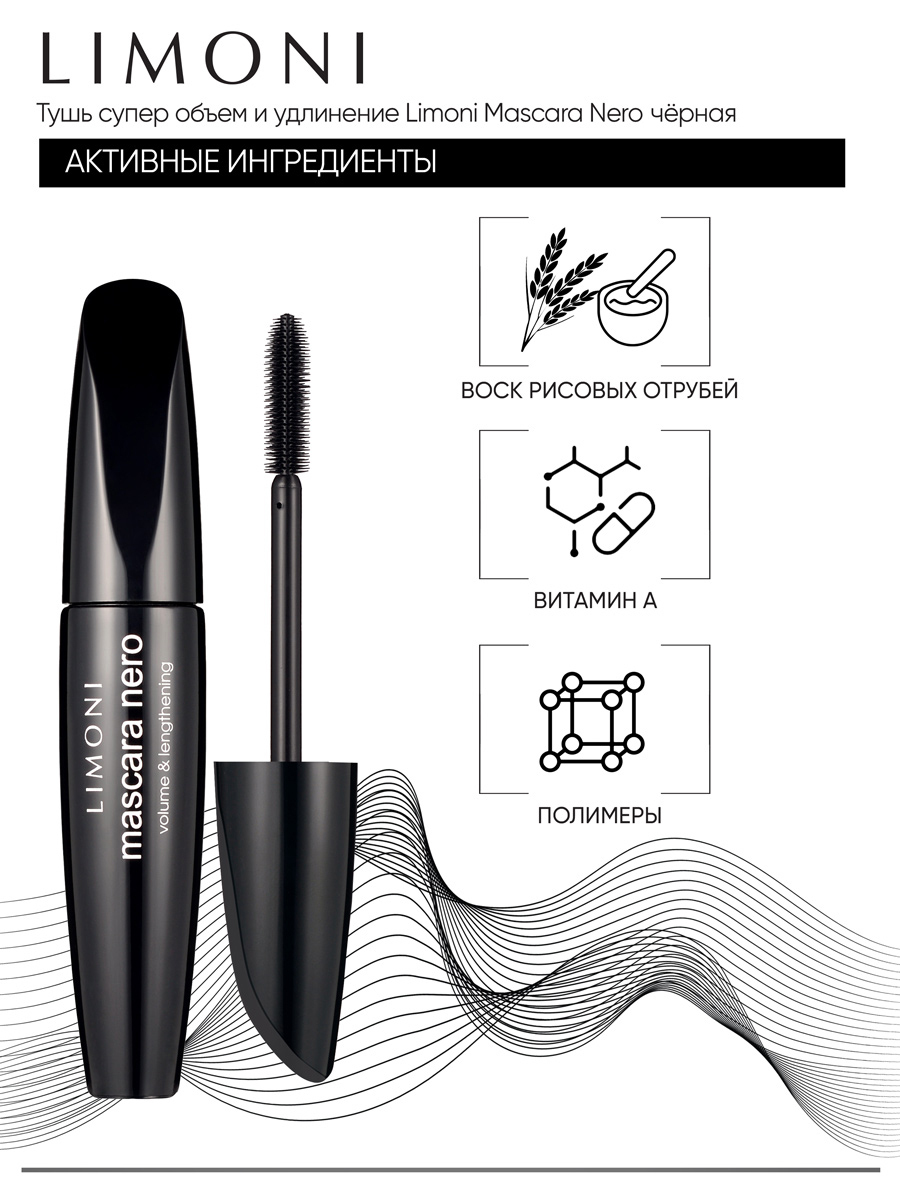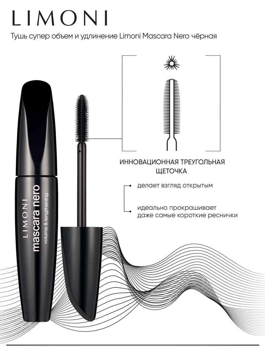 LIMONI Тушь для ресниц черная Италия / Удлиннение и объем / Mascara Nero