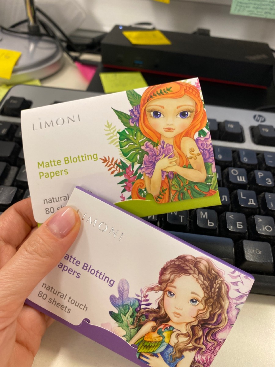 LIMONI Матирующие салфетки для лица 100% натуральные с зеленым чаем / Matte Blotting Papers 80 шт, лиловые