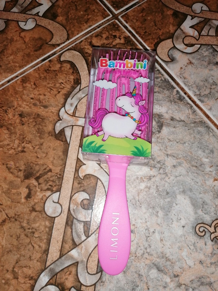 LIMONI Расческа для распутывания волос детская массажная гибкая Bambini / Розовый Единорог