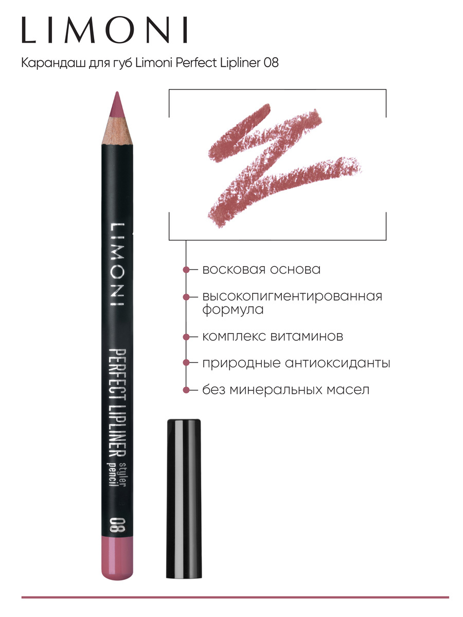 LIMONI Карандаш для губ стойкий с витаминами С и Е Чехия / Perfect Lipliner тон 08
