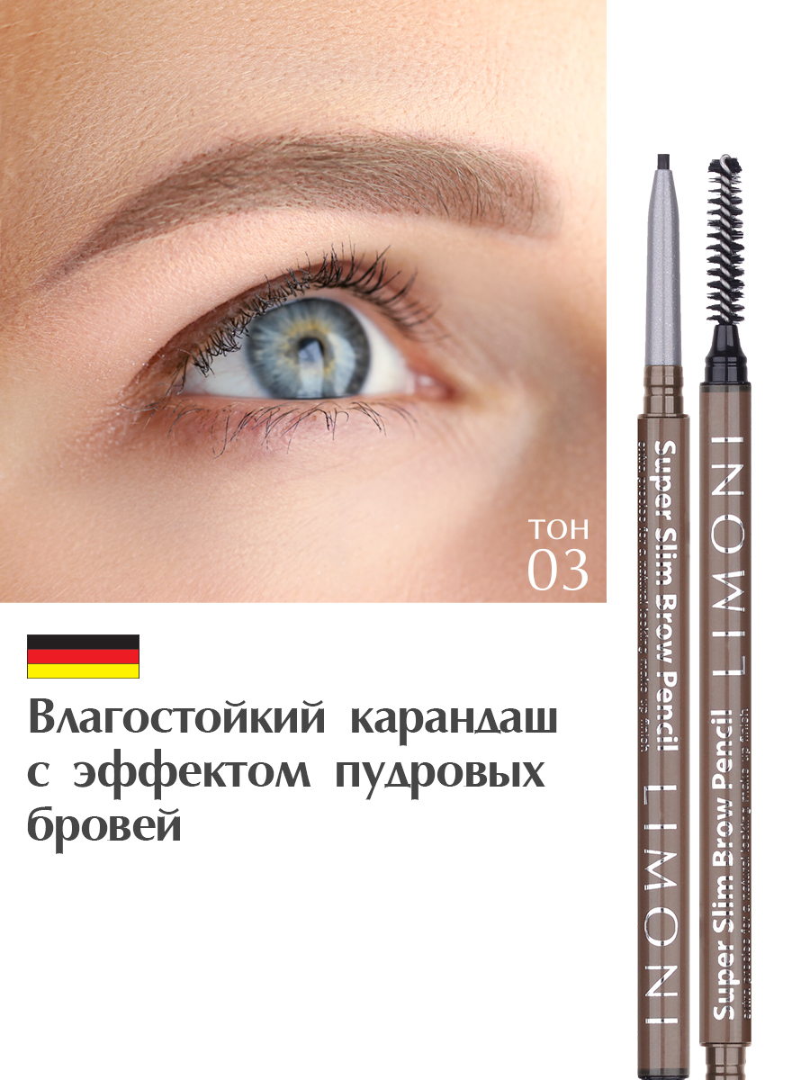 LIMONI Карандаш для бровей Германия / С Витамином Е / Super Slim Brow Pencil тон 03