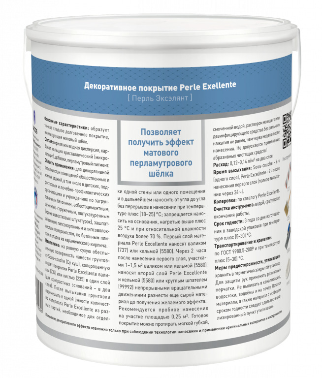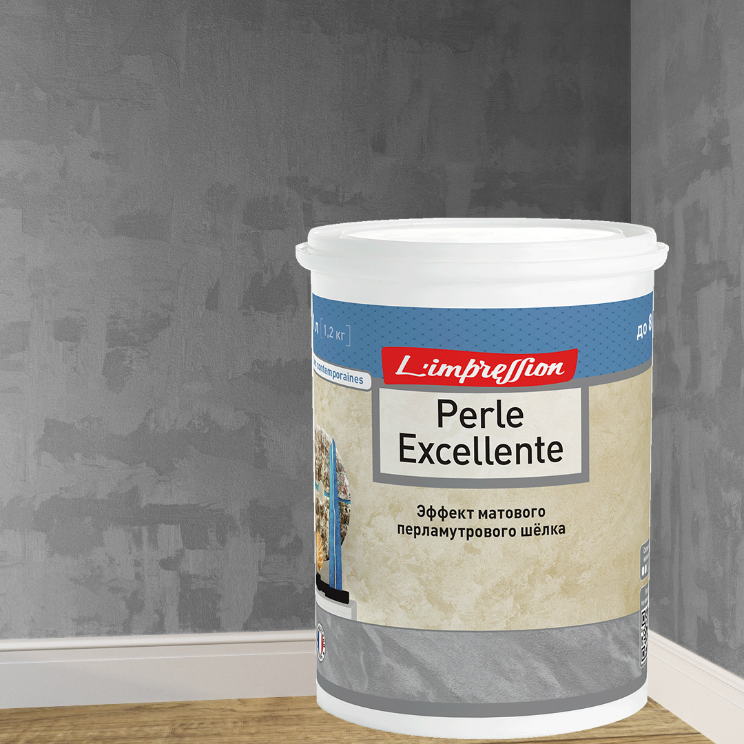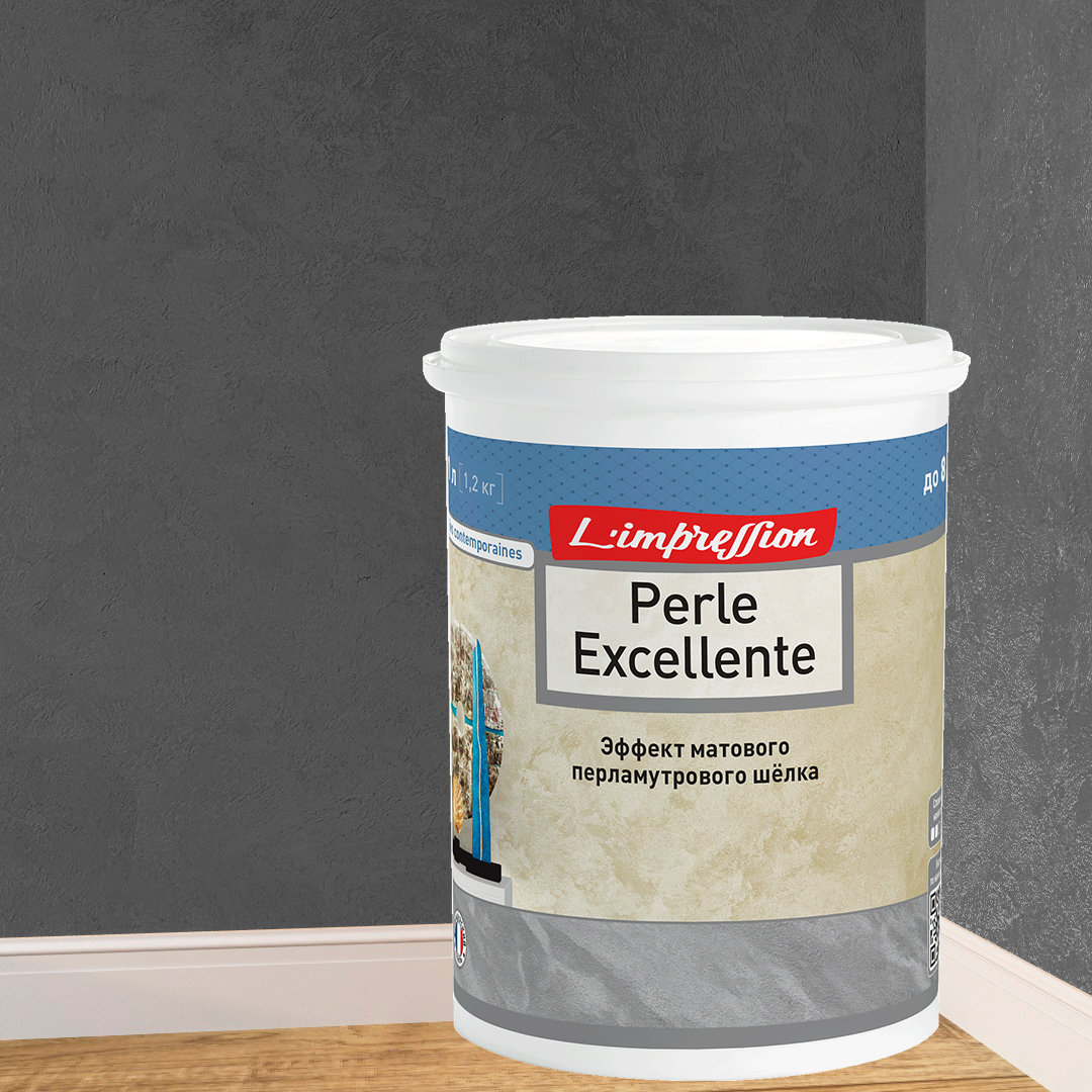 Декоративное покрытие L'IMPRESSION ПЕРЛЬ ЭКСЭЛЯНТ с эффектом матового перламутрового шелка, Акрилатная, 3 кг, темно-серый