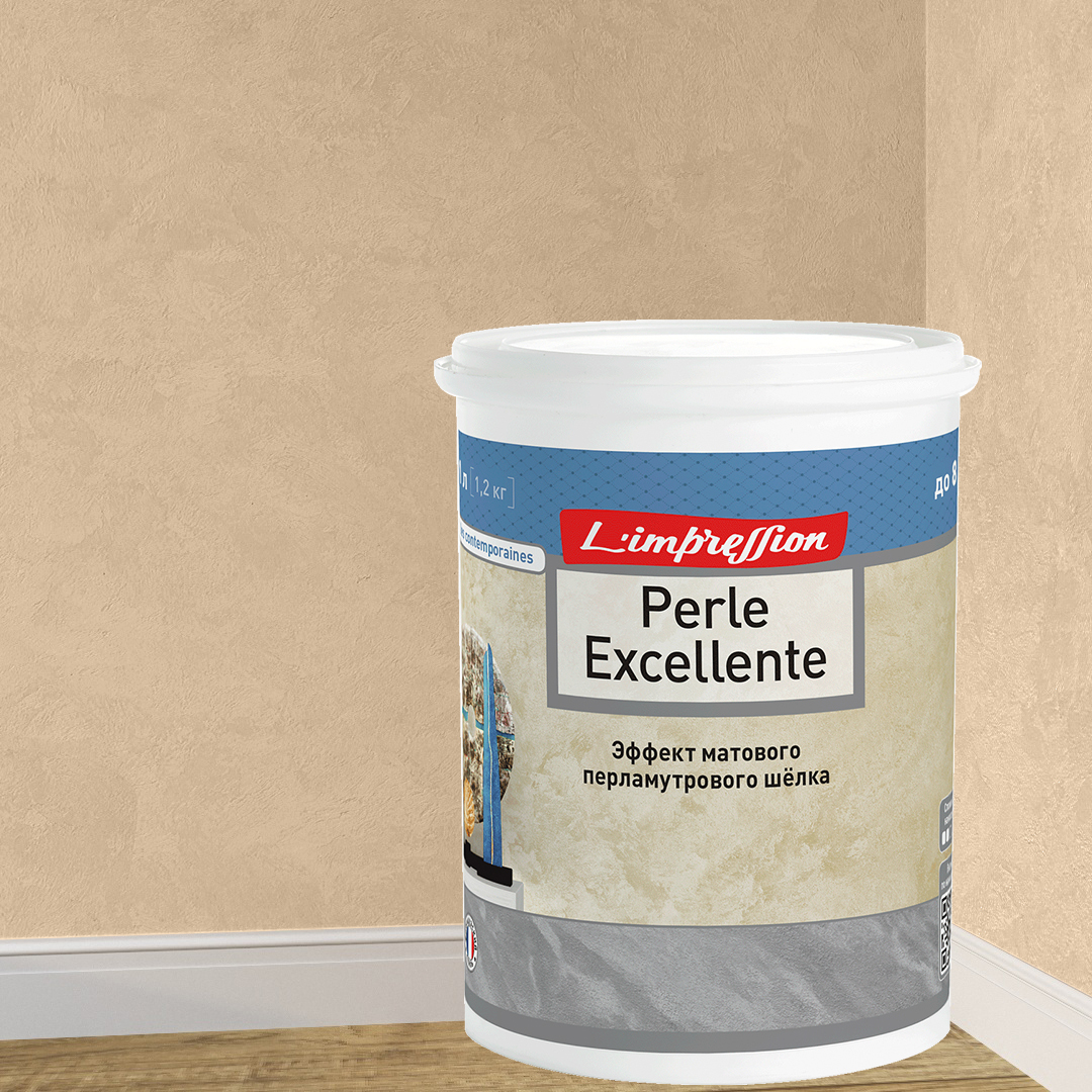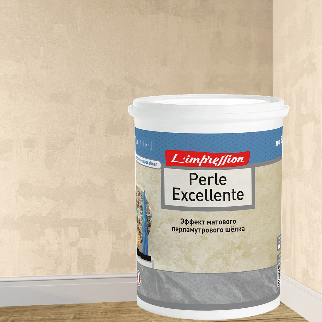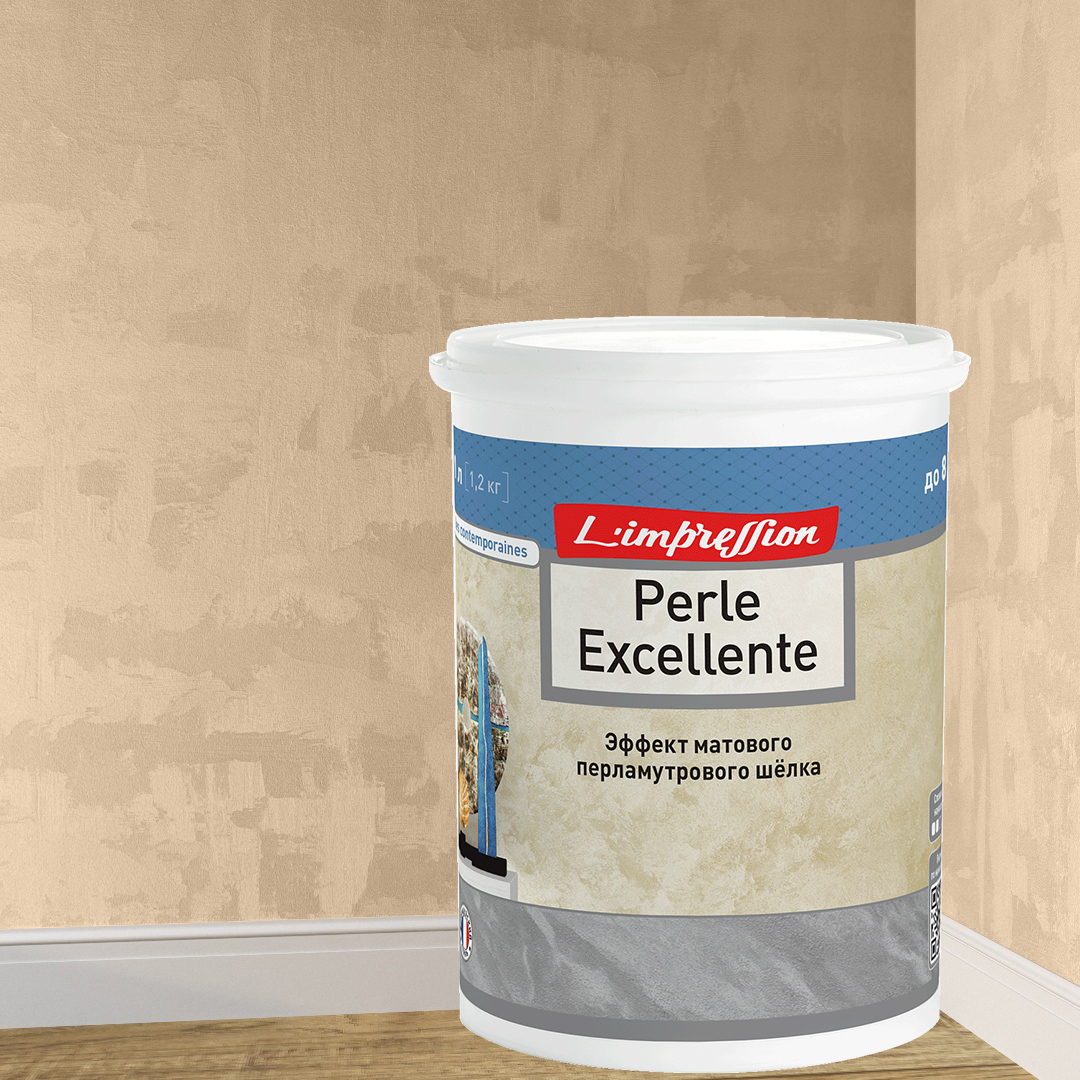 Декоративное покрытие L'IMPRESSION ПЕРЛЬ ЭКСЭЛЯНТ с эффектом матового перламутрового шелка, Акрилатная, 3 кг, кремовый