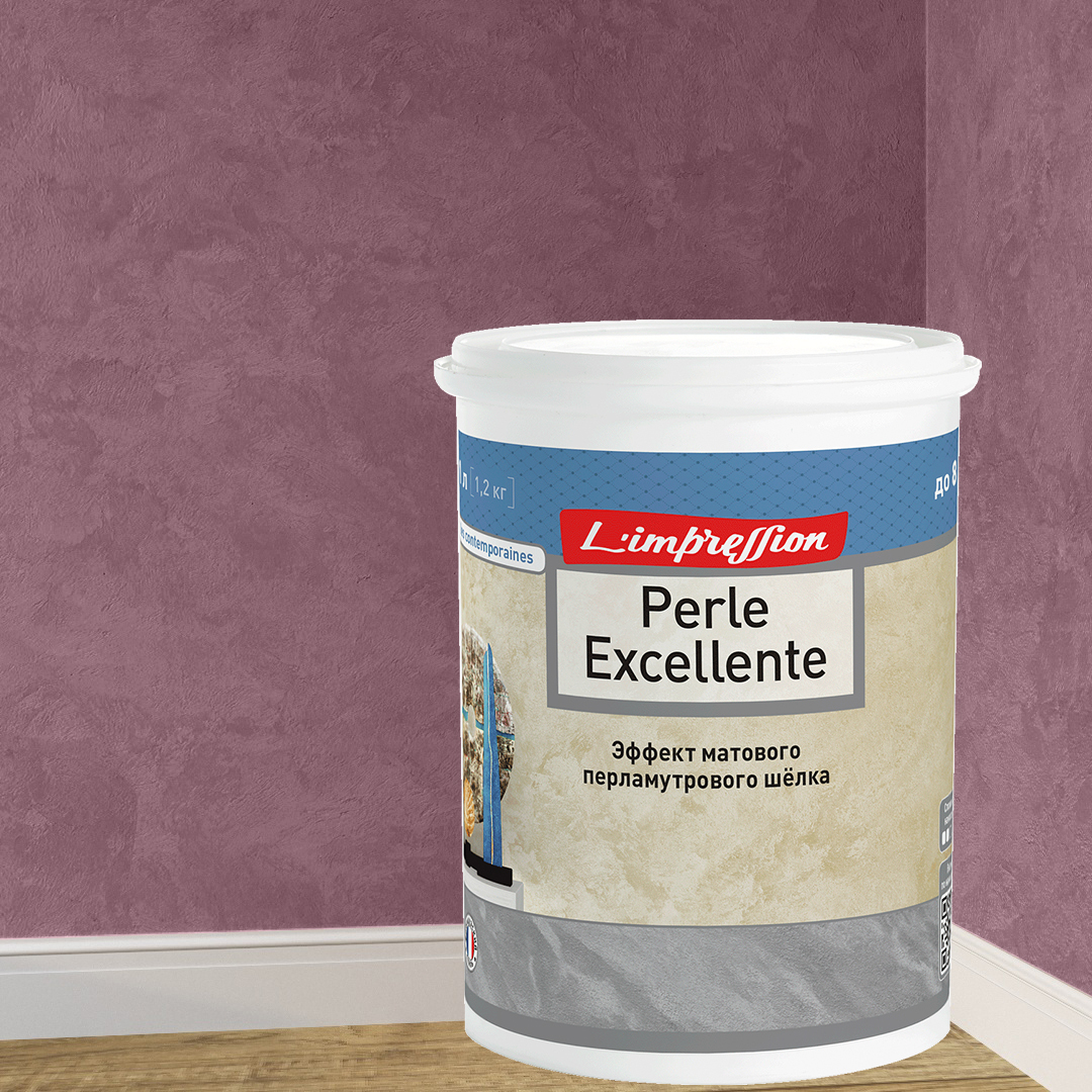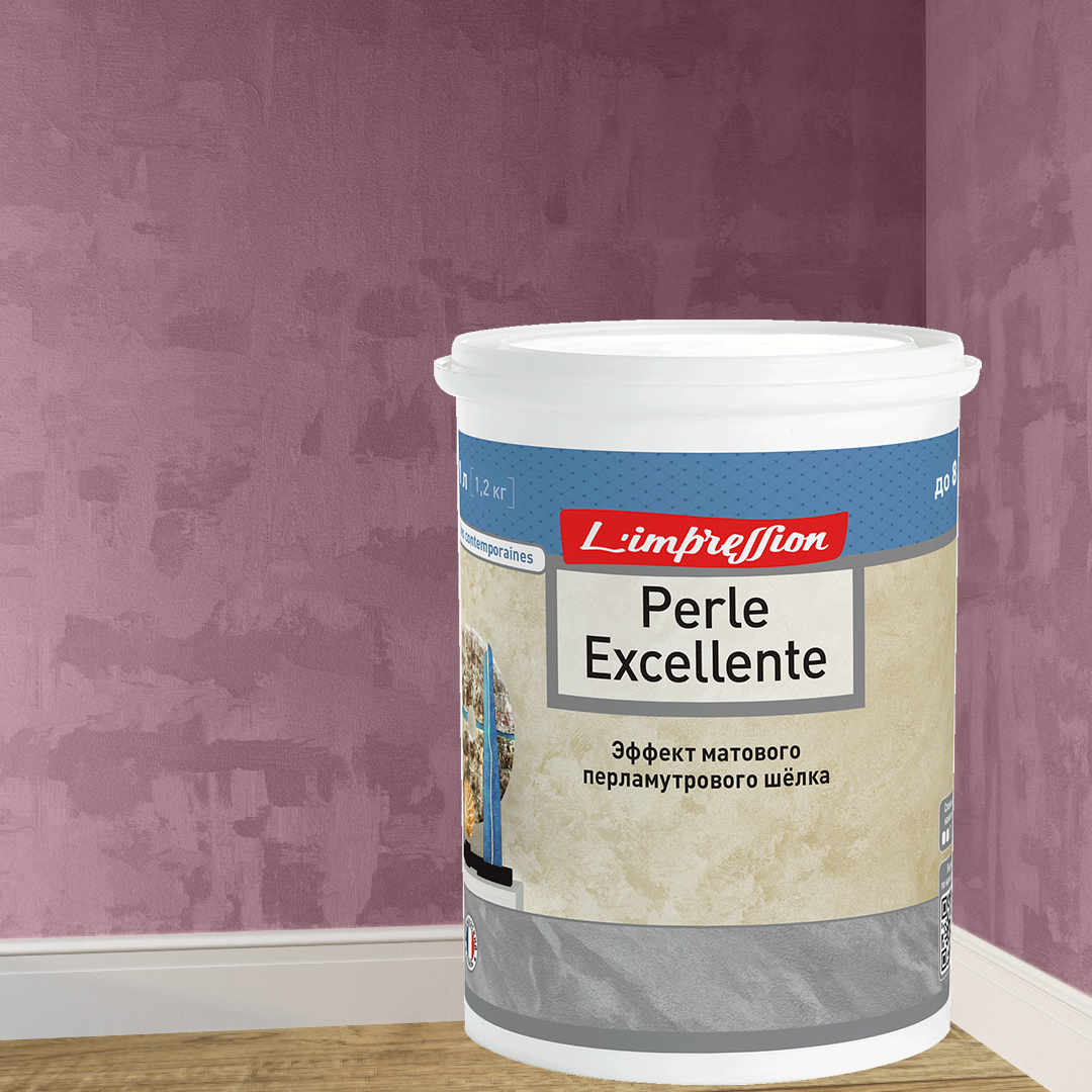 Декоративное покрытие L'IMPRESSION ПЕРЛЬ ЭКСЭЛЯНТ с эффектом матового перламутрового шелка, Акрилатная, 3 кг, сиреневый
