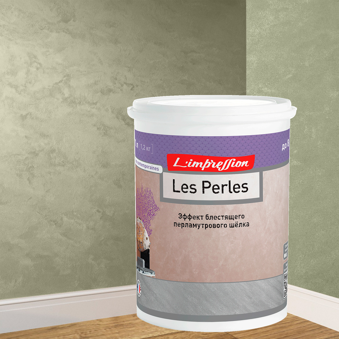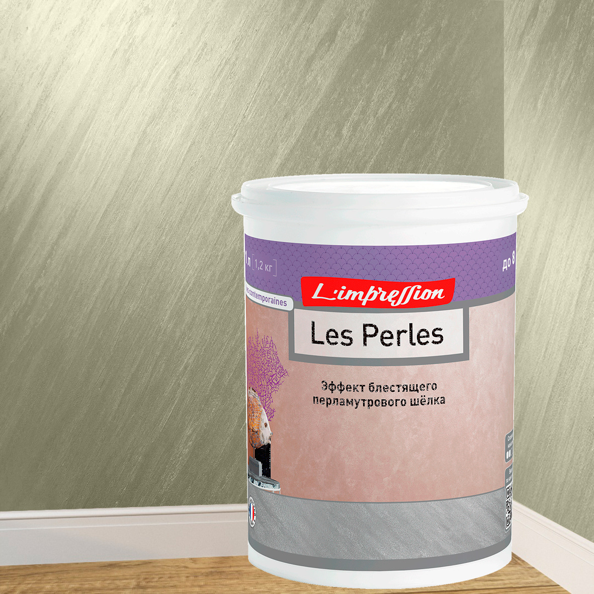 Декоративное покрытие L'IMPRESSION ЛЕ ПЕРЛЬ с эффектом блестящего муарового шёлка, Акрилатная, 1.58 кг, хаки